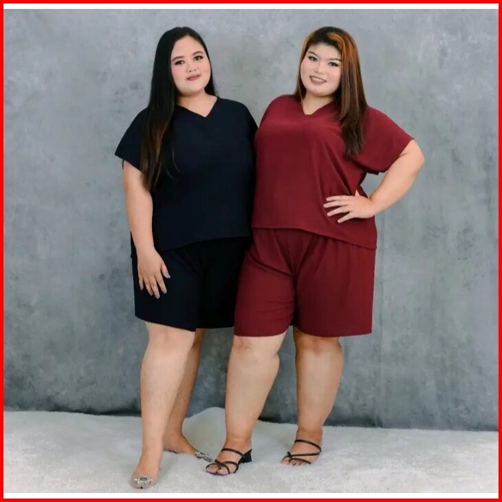 Promo Setelan Jumbo Crinkle Airflow Polos Setelan Celana Pendek Wanita Setelan Lengan Pendek