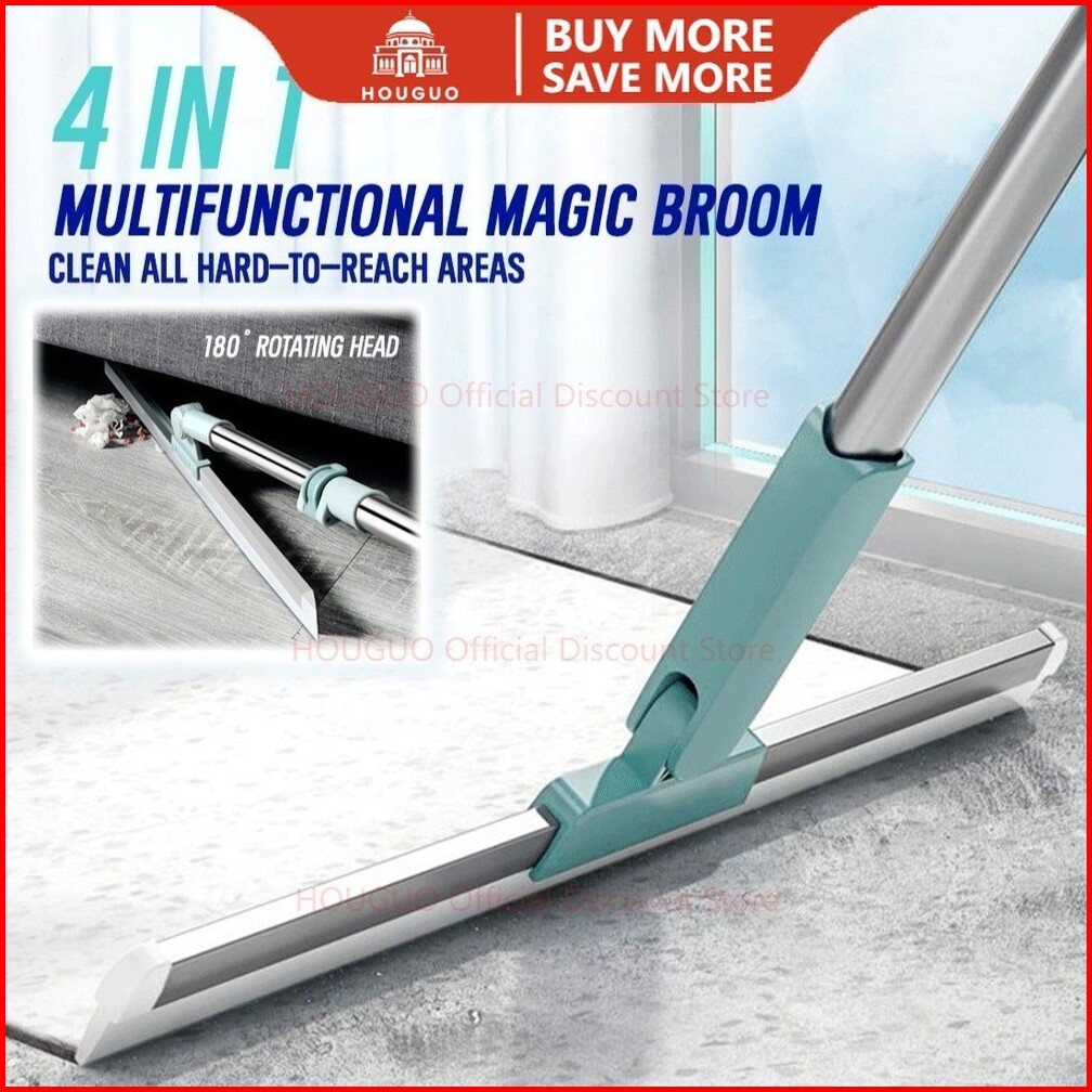 Houguo Alat Pembersih Lantai Praktis Wiper 50cm Alat Pembersih Kaca 4 In 1 Pembersih Cermin Jendela Putar 180 Derajat Ga