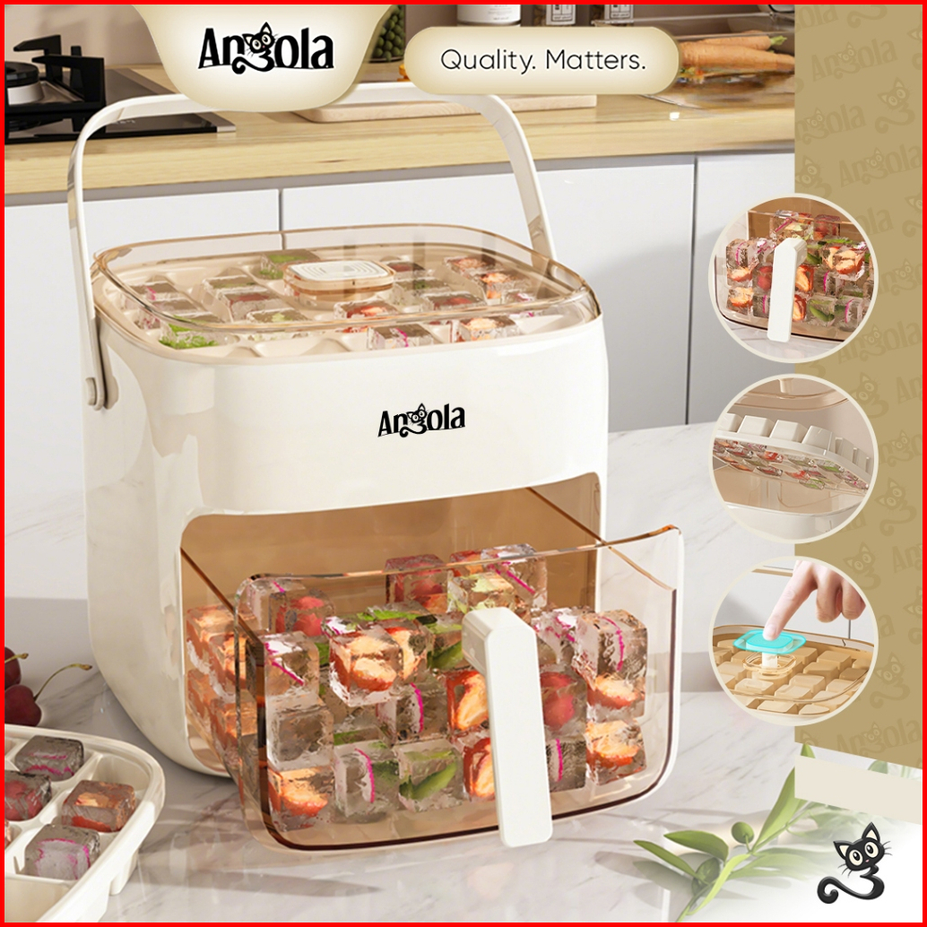 Angola Cetakan Es Batu Sekali Tekan E52 Ice Cube Maker Ice Storage Box Cetakan Wadah Es 2in1
