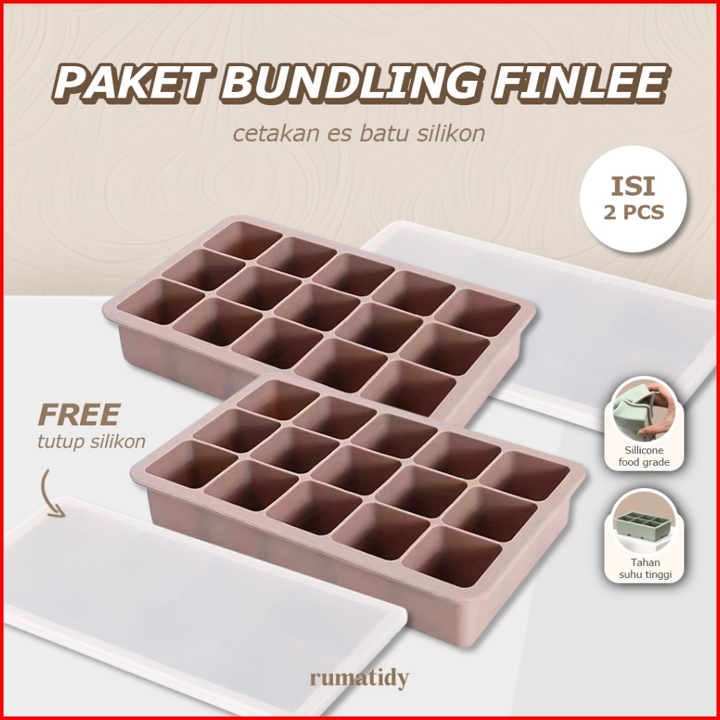 Bundling Finlee Cetakan Es Batu Sillicone Wadah Mpasi Kaldu Es Batu Bpa Free Tutup Silicone