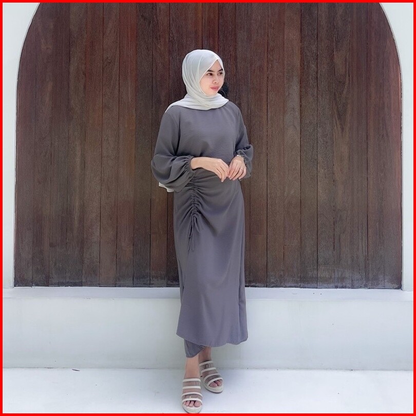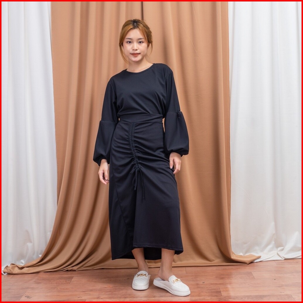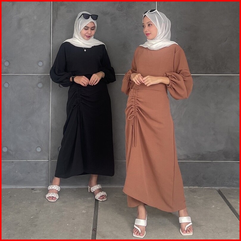 One Set Nadia Set Wanita Rok Serut Blouse Lengan Balon Fashion Muslim Wanita