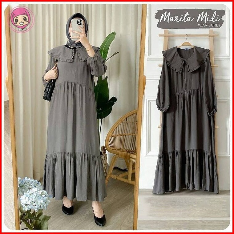Marita Tunik Midi Dress Polos Masita Midi Dress Muslim Midi Dress Crepe Premium Fashion Muslim Wanita