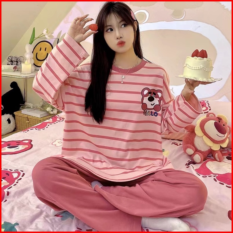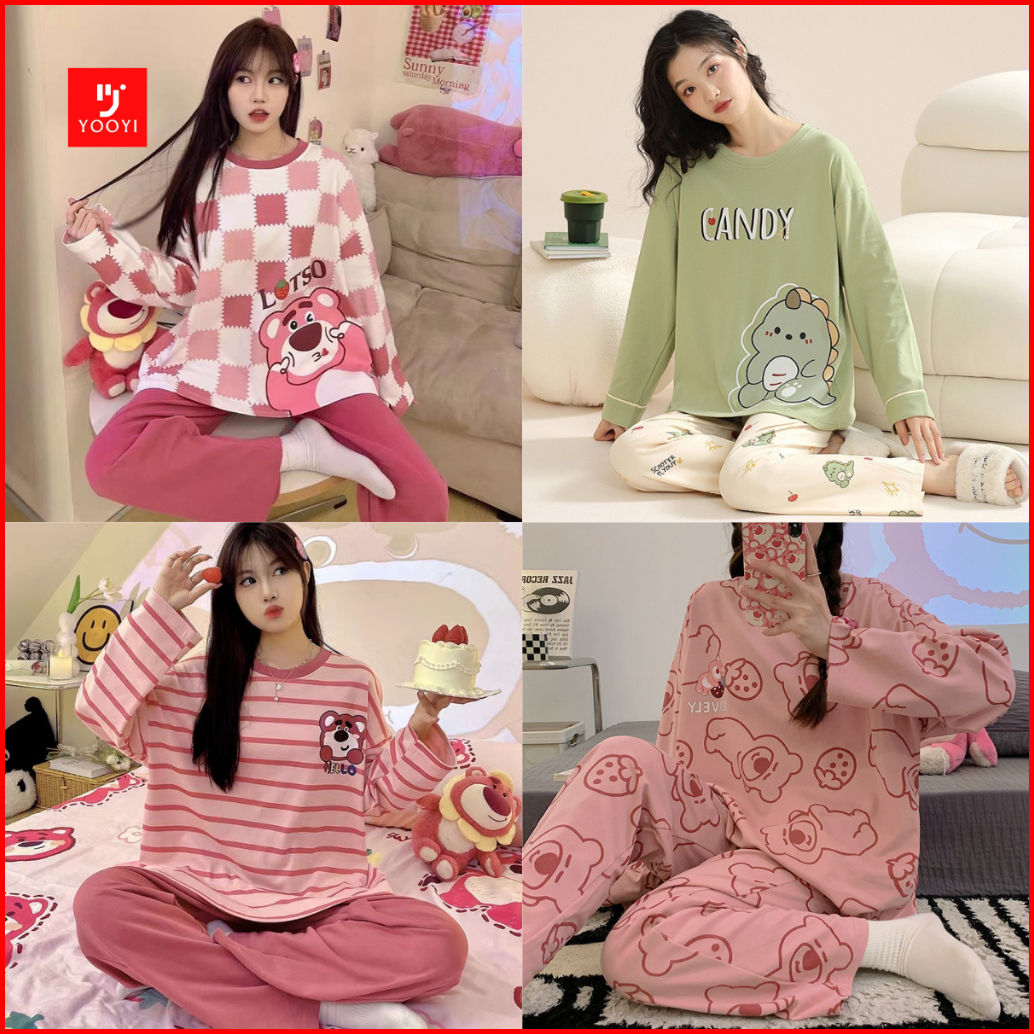 Yooyi Baju Tidur Jumbo 5xl Wanita Set Dewasa Bahan Katun Adem Lengan Panjang Celana Panjang Piyama Setelan Perempuan Ove