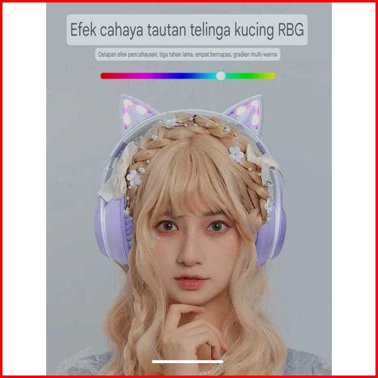 Headphone Bluetooth Wireless P47m Cat Ear V5.0 Hifi Sound Quality Lampu Led