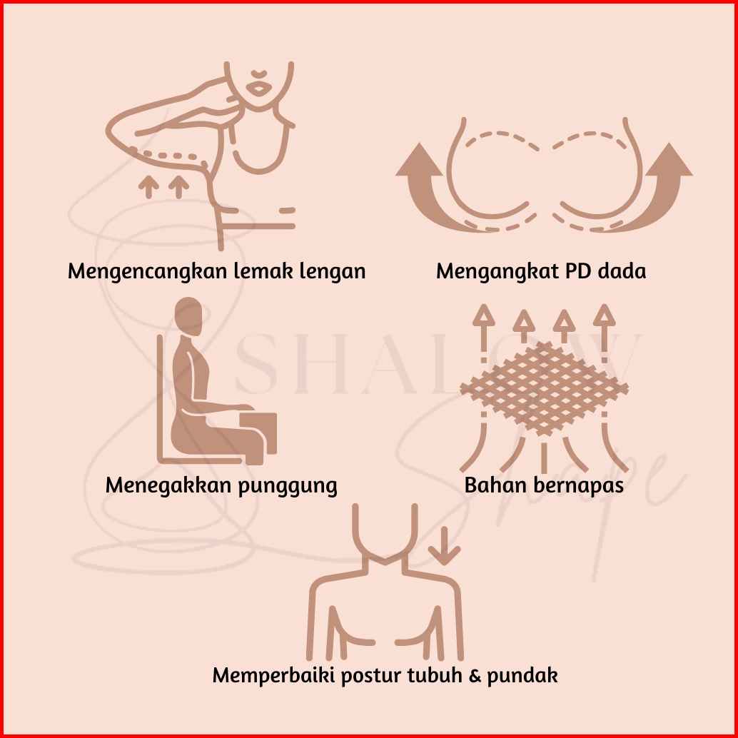 Shalow M-5xl Luna Long Korset Pengecil Lengan Gelambir Korset Manset Korset Lengan Panjang