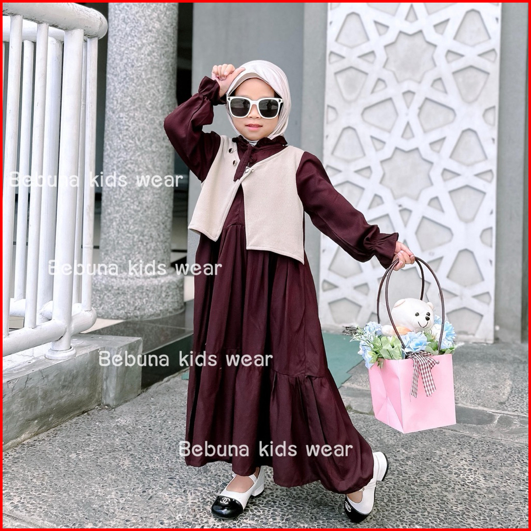 Gamis Annisa Gamis Anak Bahan Rayon Twill Kombinasi Rompi Bahan Knit