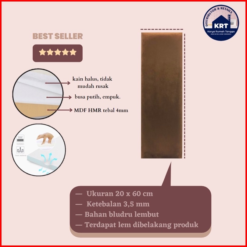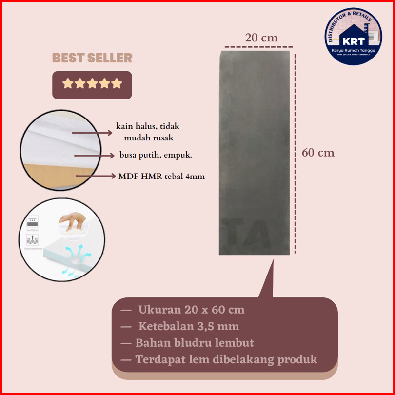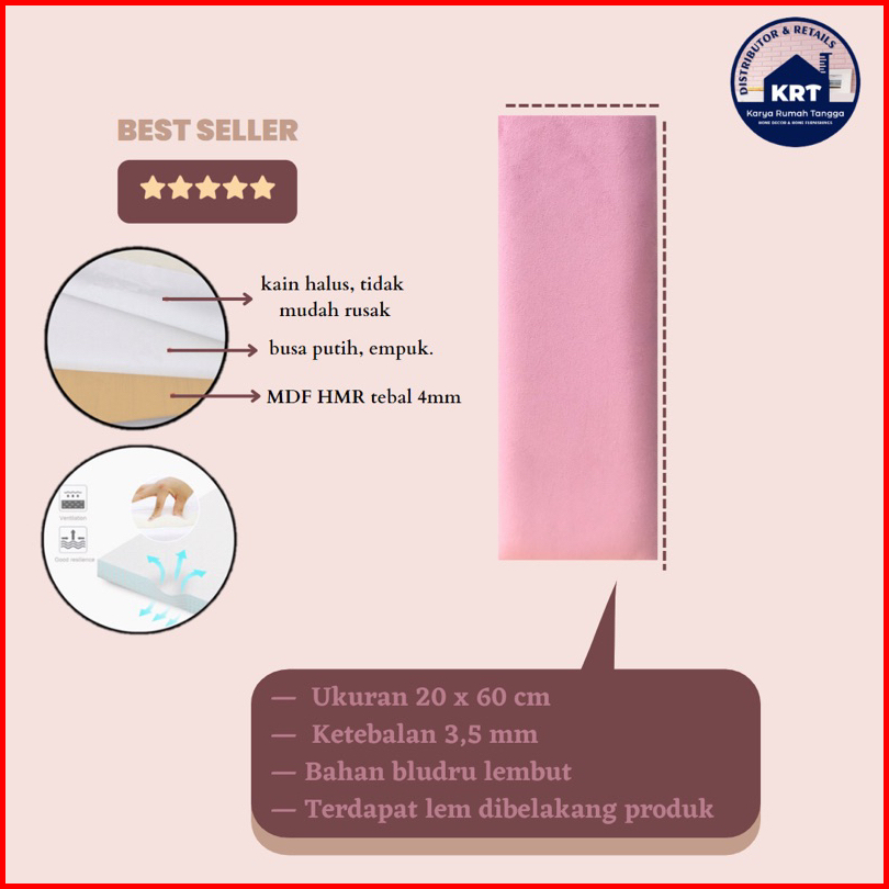 Karruta - Headboard Pure Bludru Model Persegi Panjang - Sandaran Kasur Wall Panel 3d Peredam Suara