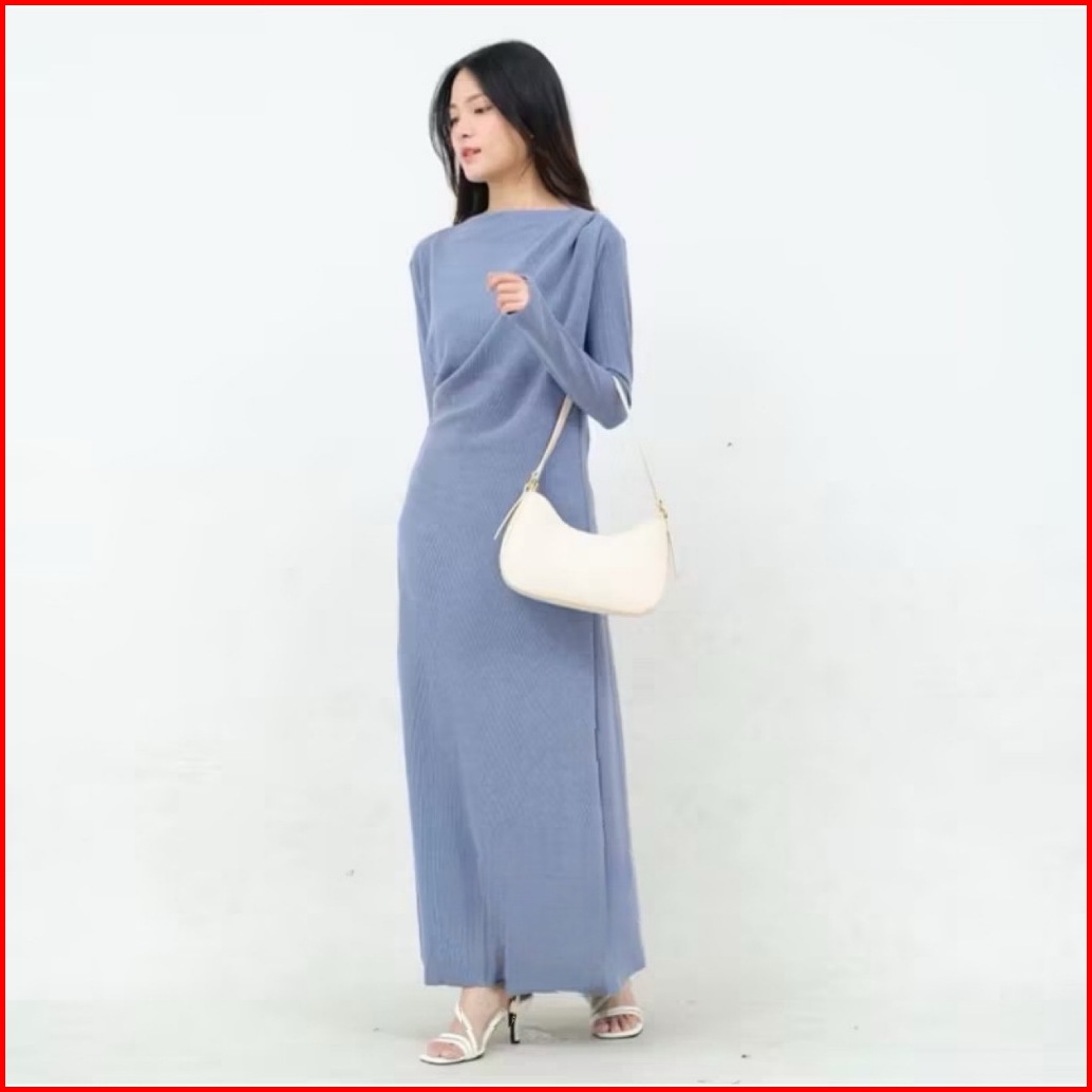 Ruby Long Dress Knit Wanita Dres Bodycon Kekinian Elegan Korean Style Dress Pressbody Korean Look