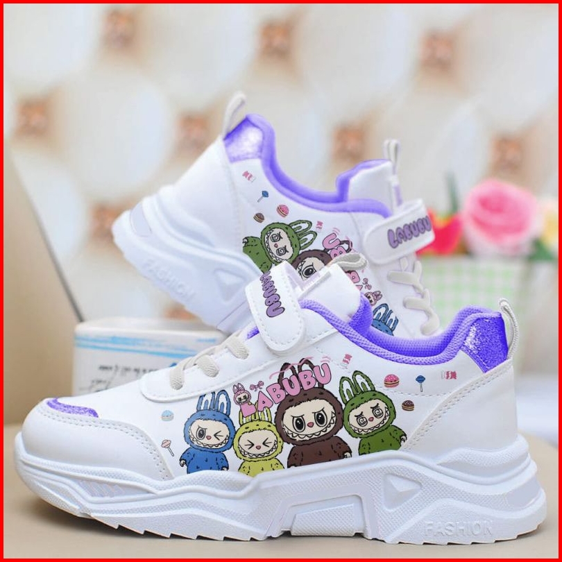 Sepatu Sneakers Anak Perempuan Motif Labubu Kuromi Viral Size 26-35 Sepatu Sekolah Tk Sd