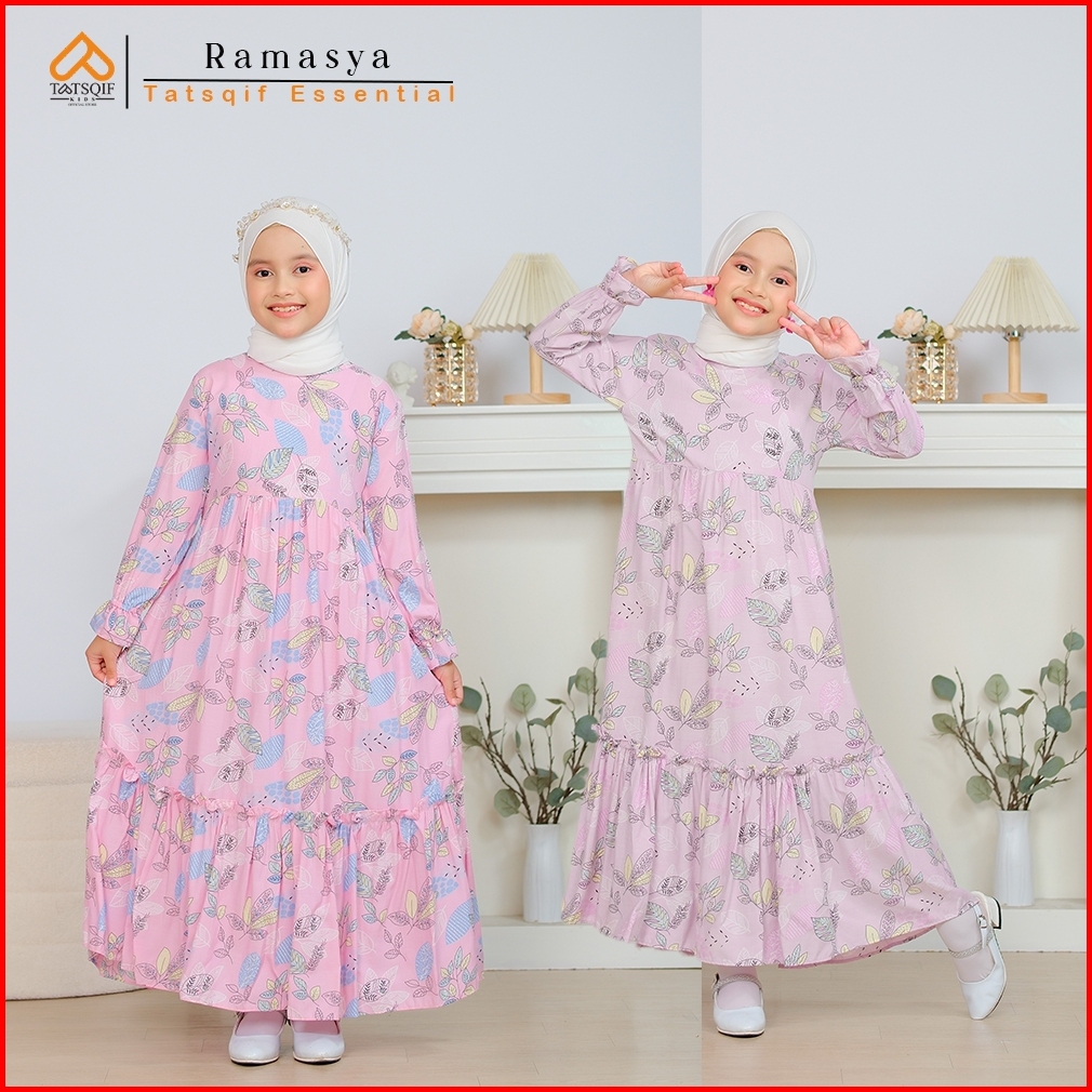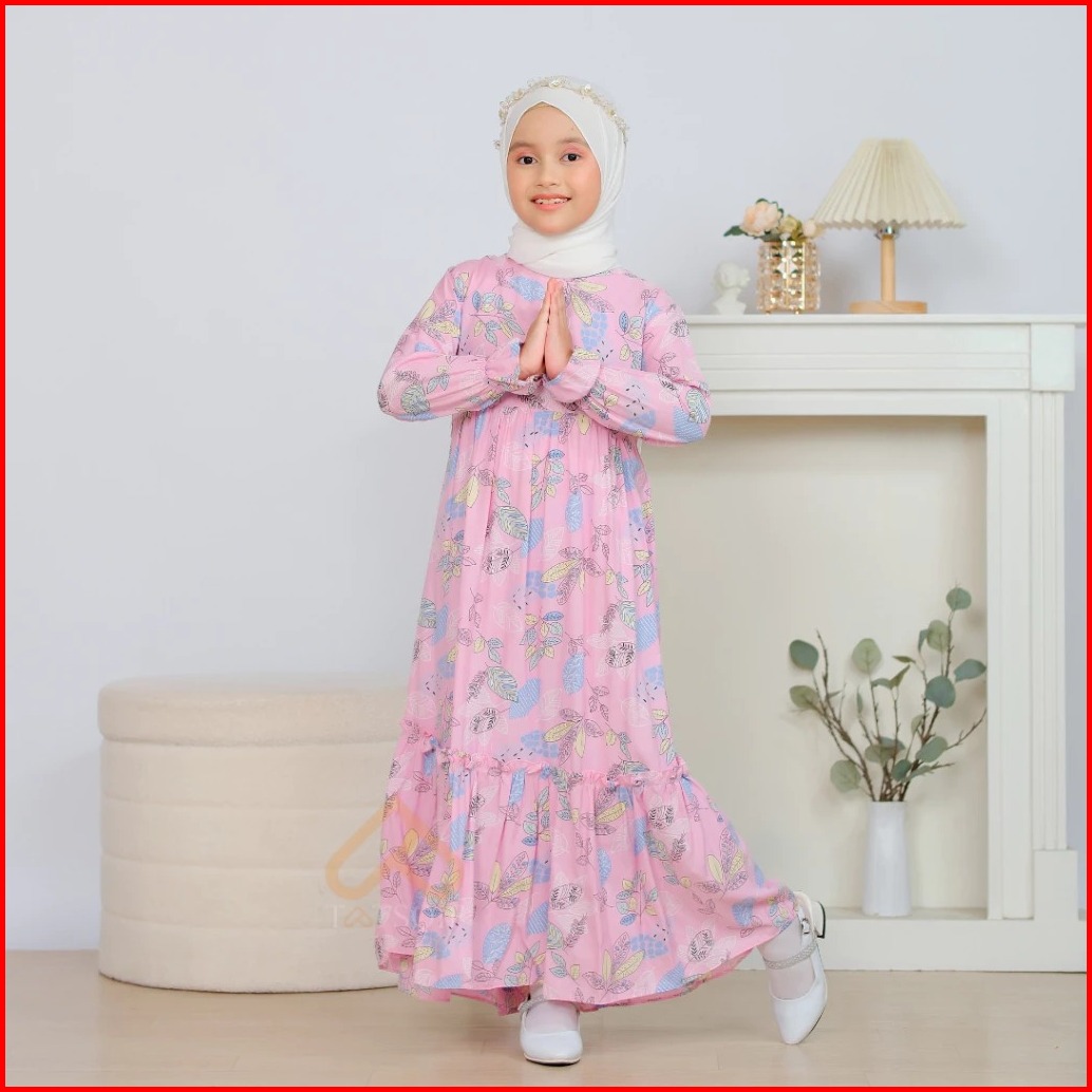 Tatsqif Gamis Anak Syari Dress Perempuan Usia 3-12 Tahun Berkualitas Motif Bunga Ramasa Rayon Good Quality
