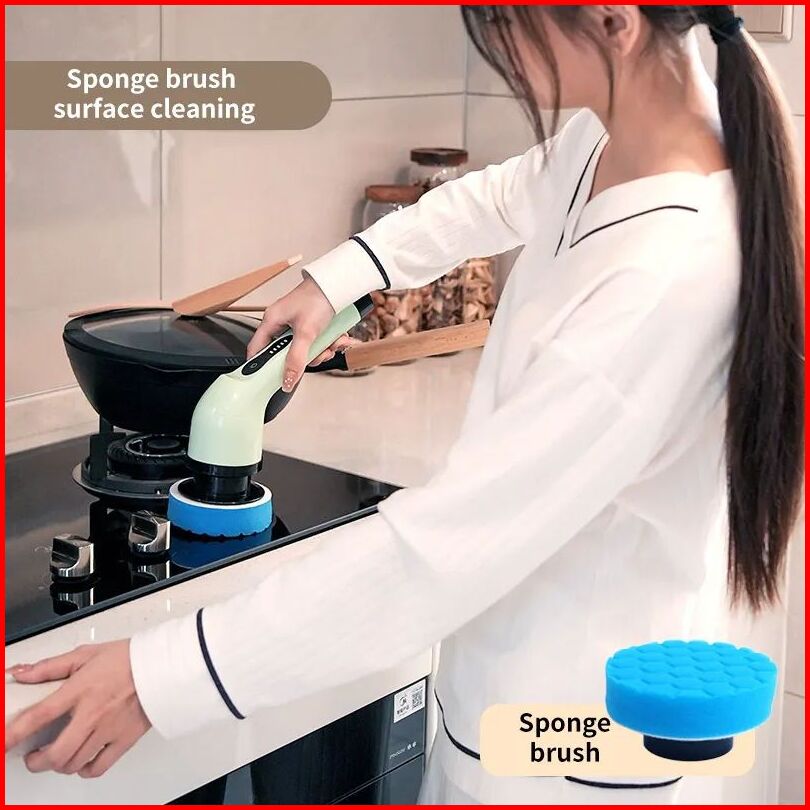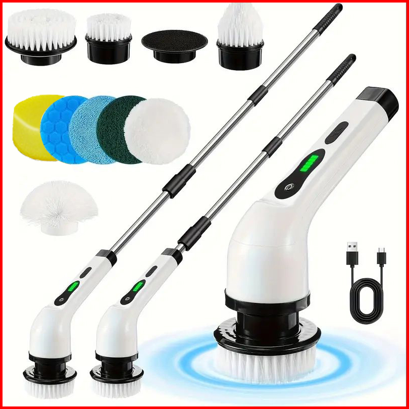 Electric Spin Scrubber Sikat Pembersih Tanpa Kabel 9 Kepala Gagang Dapat Disesuaikan Cleaning Brush