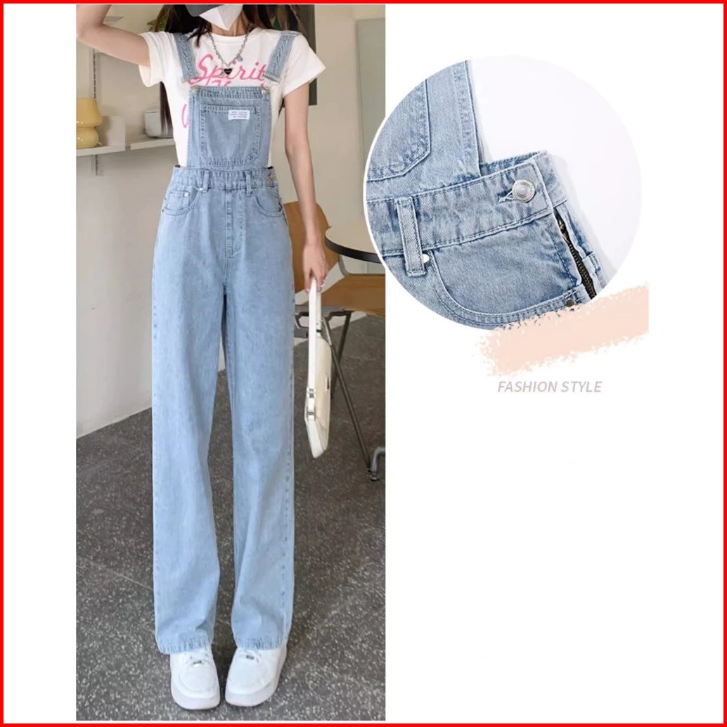 Overall Jumpsuit Jeans Murah Korea Celana Kodok Strap Overall Remaja Kekinian 2024 Terbaru