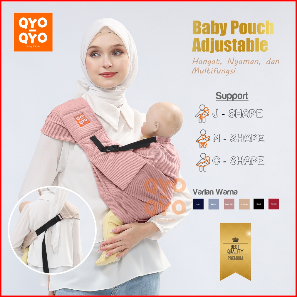 Qyo-qyo - Waffle Baby Pouch Adjustable Dengan Busa Empuk Multifungsi Gendongan Bayi Premium