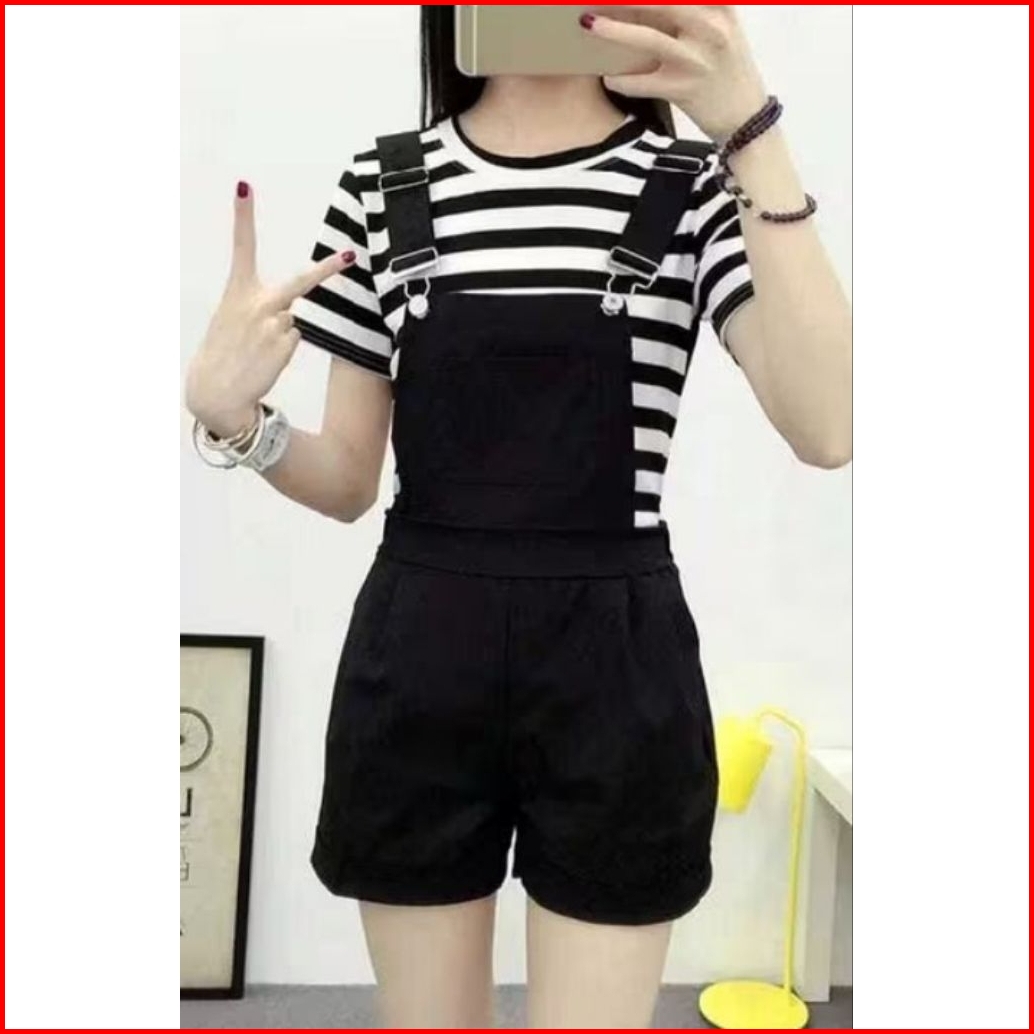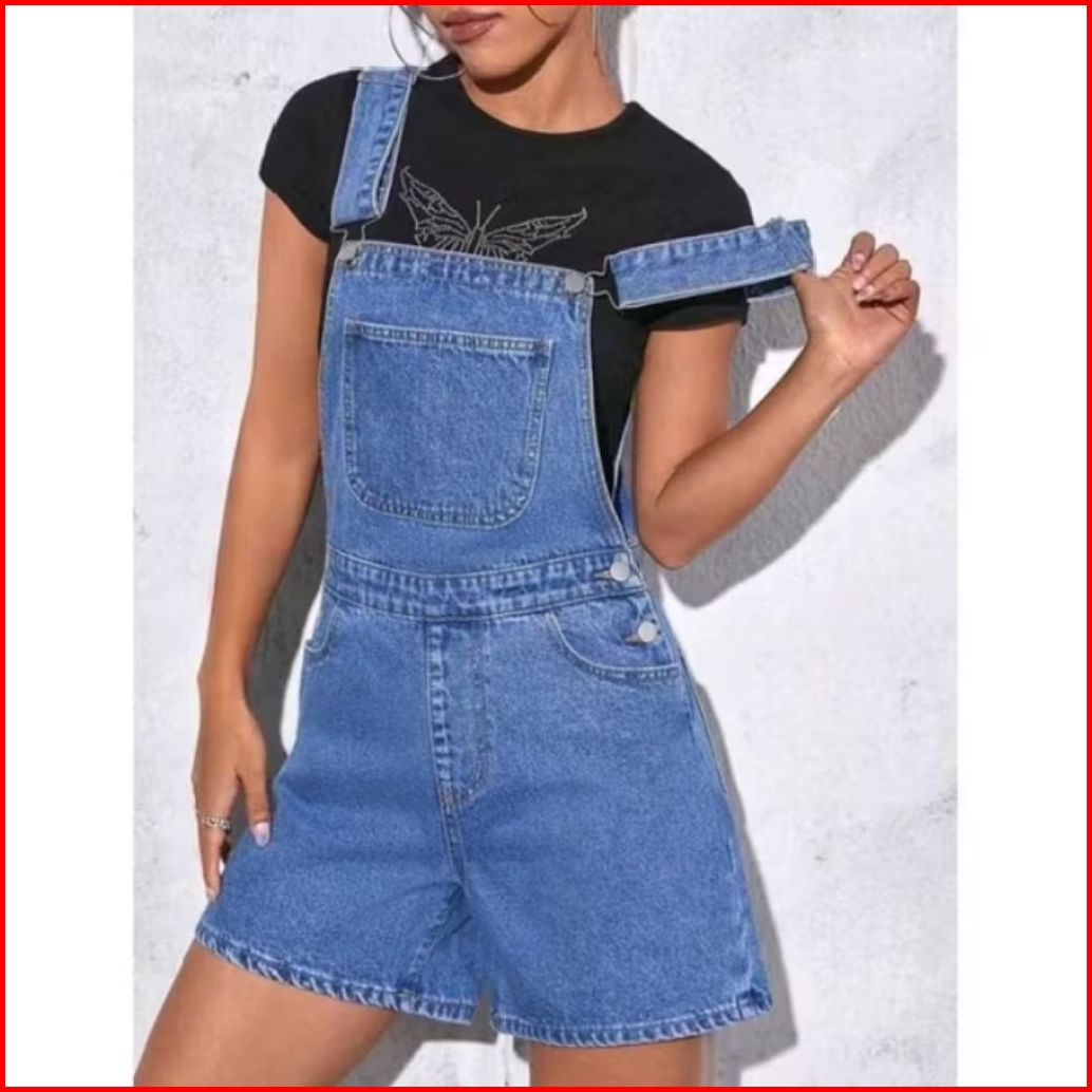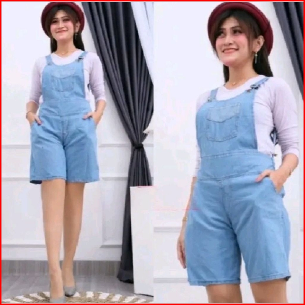 Overall Jumpsuit Jeans Pendek Baju Kodok Wanita Remaja Dan Dewasa Model Trend Fashion Masa Kini