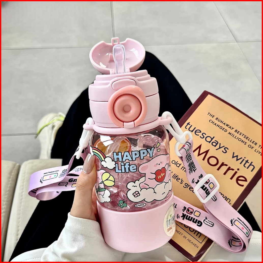 Botol Minum Anak Insulated 2 Cara Minum 580ml Bpa Free Tali Panjang Karakter Kartun Anak Sekolah