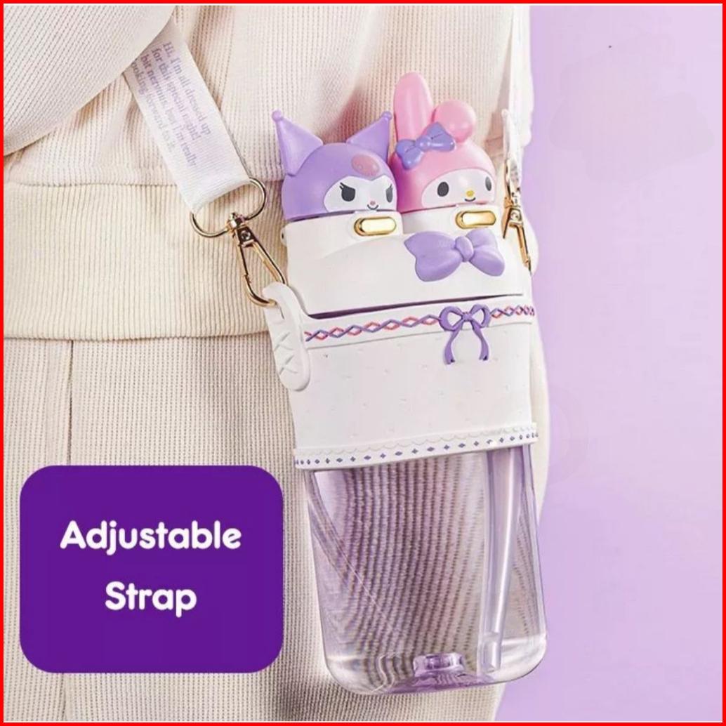 Botol Minum Anak 700ml Karakter Kuromi 2in1 Model Teguk Sedot Free Stiker 2d 3d Sanrio Melody