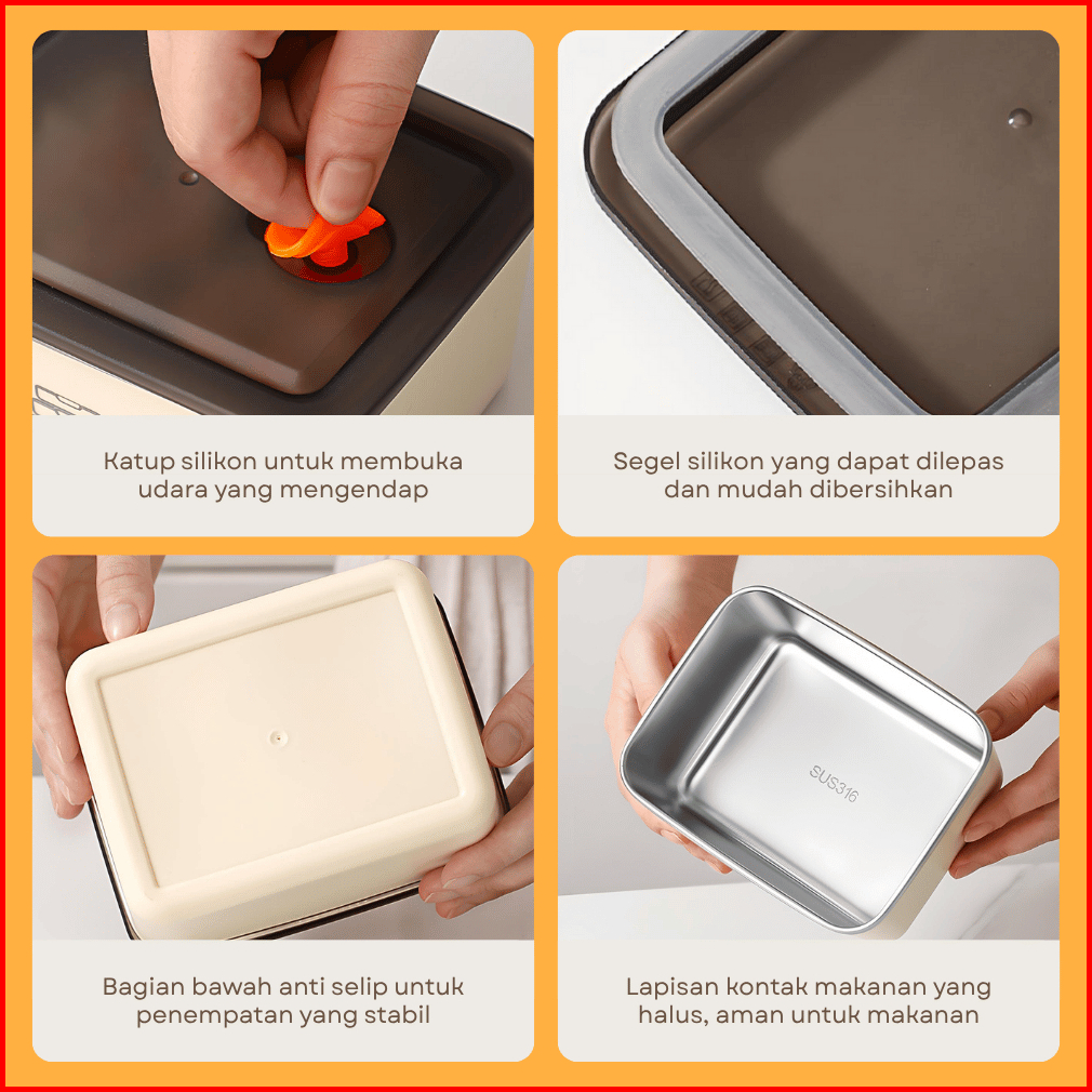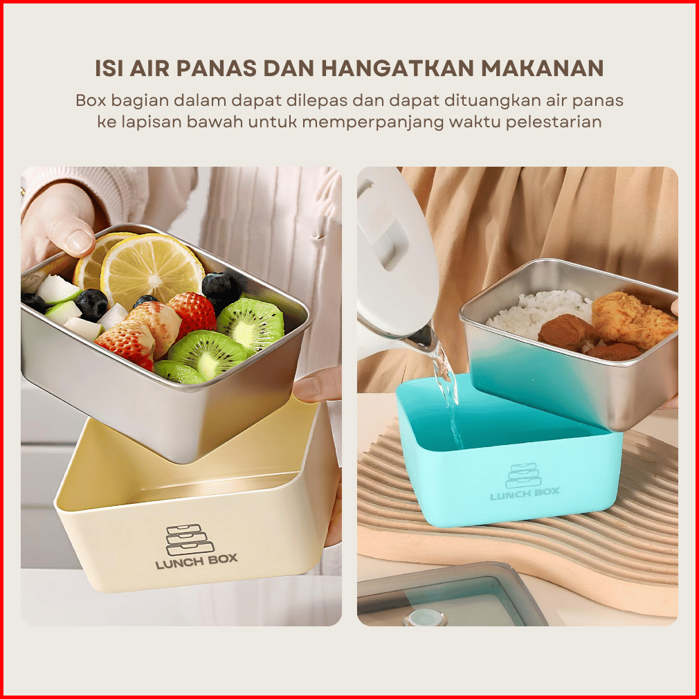 Sunland Home Solution - Lunch Box Kotak Bekal Penyimpanan Makanan Kontainer Sayur Buah Stainless Dengan Tutup Sus 316