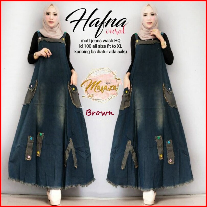 Hima Overall Jeans Hafna Kekinian Coklat Dan Biru Gbm