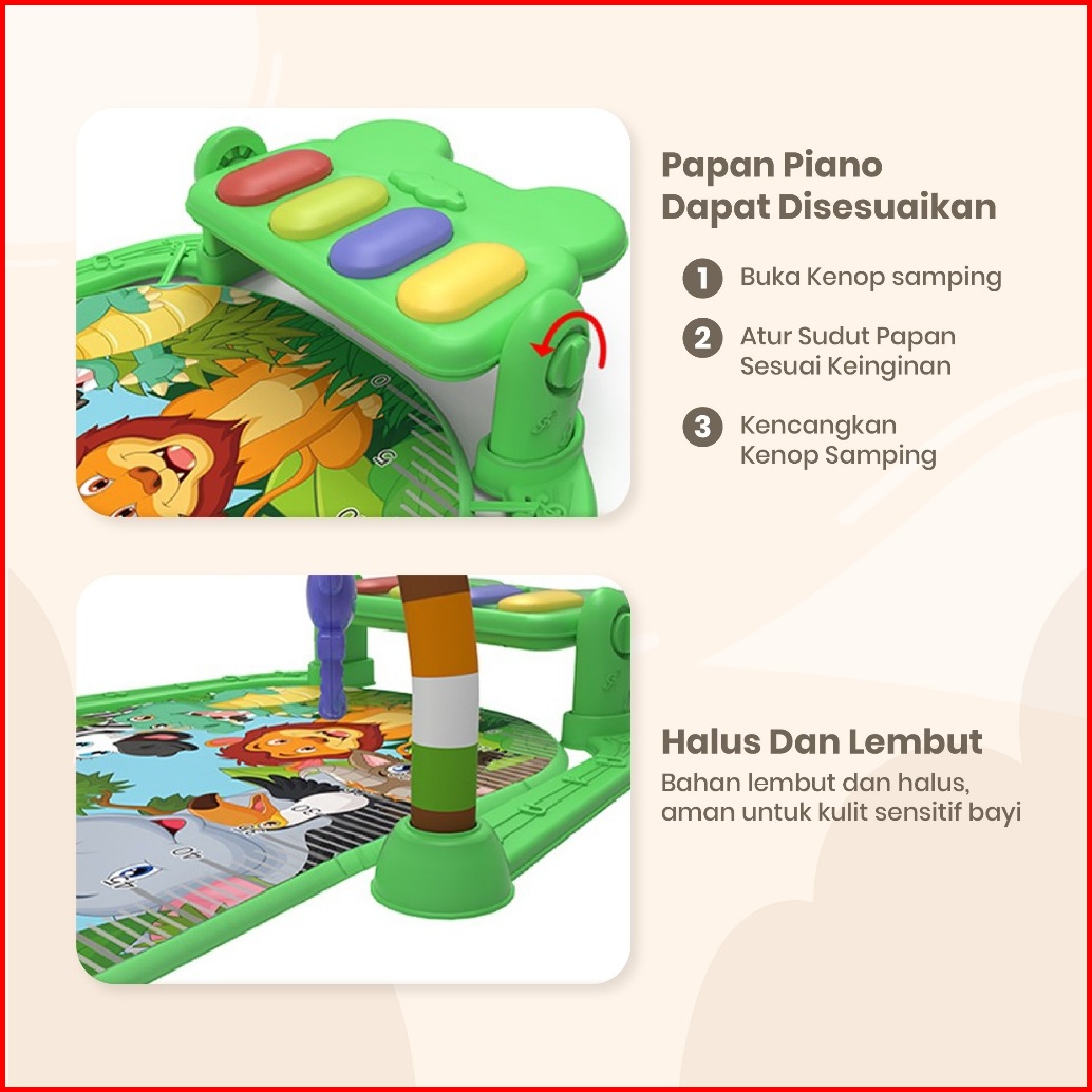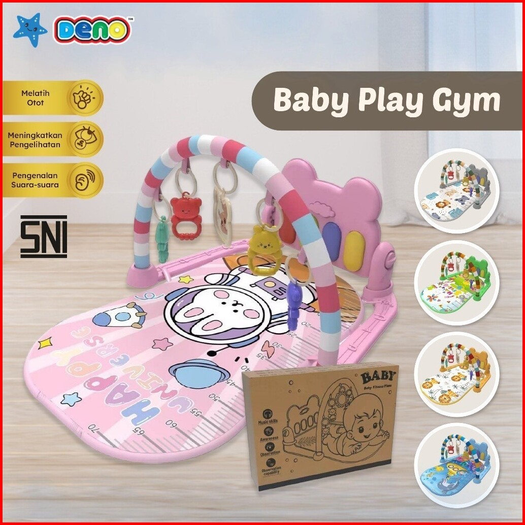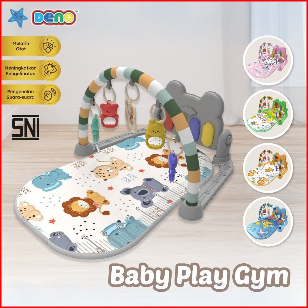 Deno Baby Playgym Piano Multi-fungsional Rattle Playmat Sensori Playmat Bayi Motif Karakter Play Gym