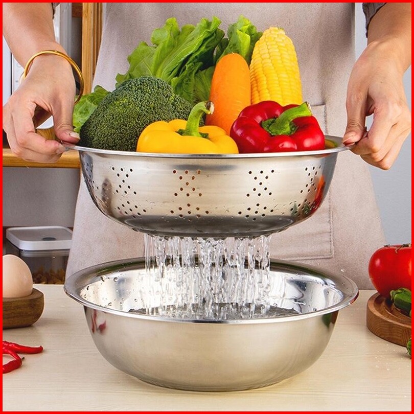Jakarta Ss - Baskom Parut 3in1 Stainless Steel Baskom Cuci Beras Sayur Buah Baskom Premium Tebal 26 28 Cm