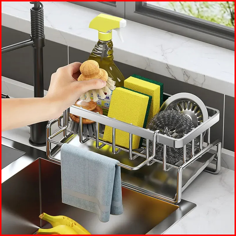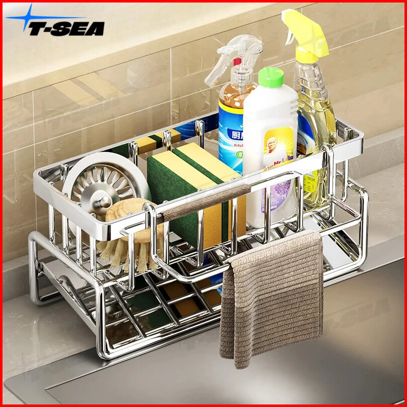 T-sea Rak Serbaguna Dapur Dari Stainless Steel Tempat Kain Lap Rak Peniris Air Rak Penyimpanan Sabut Kawat