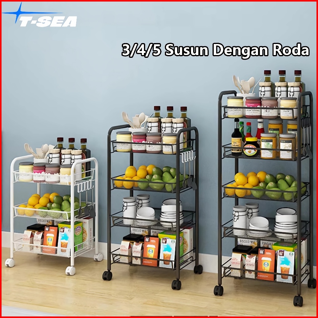 T-sea Rak Troli Rak Serbaguna Rak Besi 3 4 5 Susun Dengan Roda