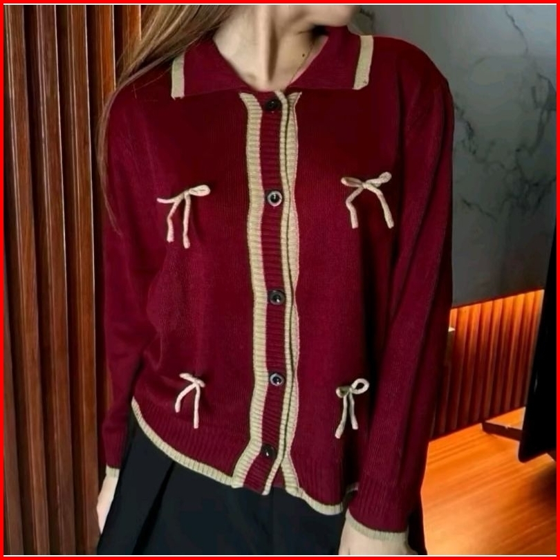 Rmm Sweater Rajut Rebecca Viral Atasan Wanita Pita Cardigan Terbaru