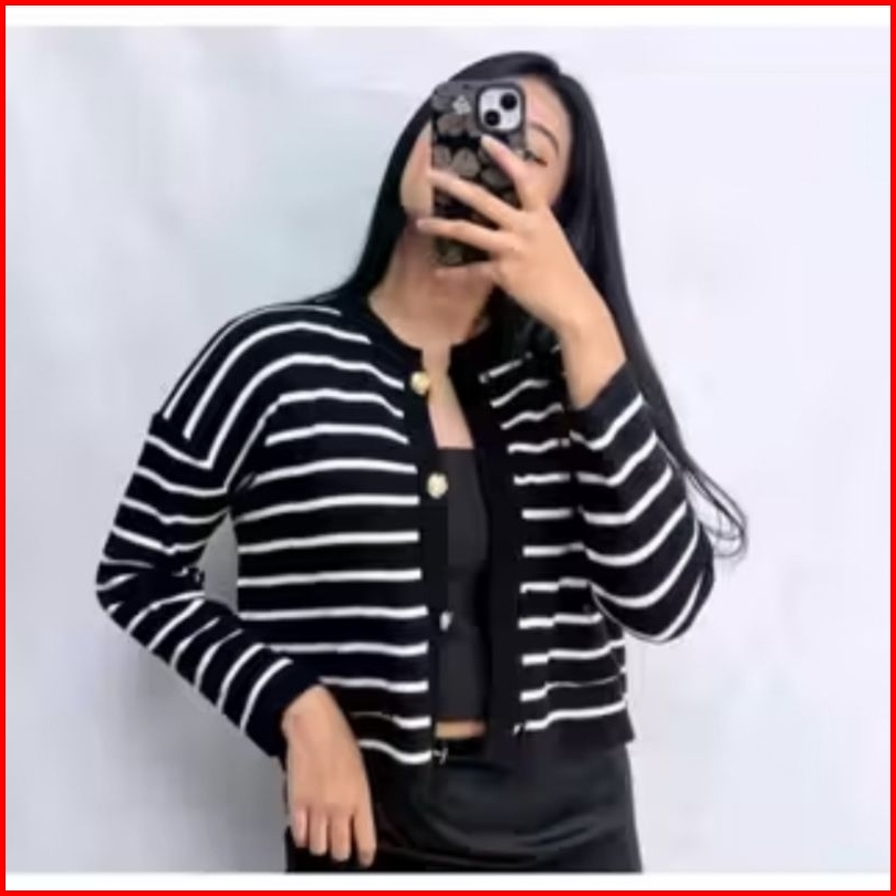 Rmm Cardigan Crop Top Cardigan Rajut Premium Cardigan Stripe Kancing Garis Garis