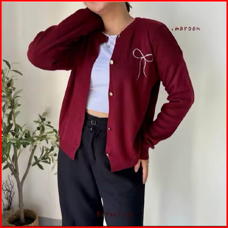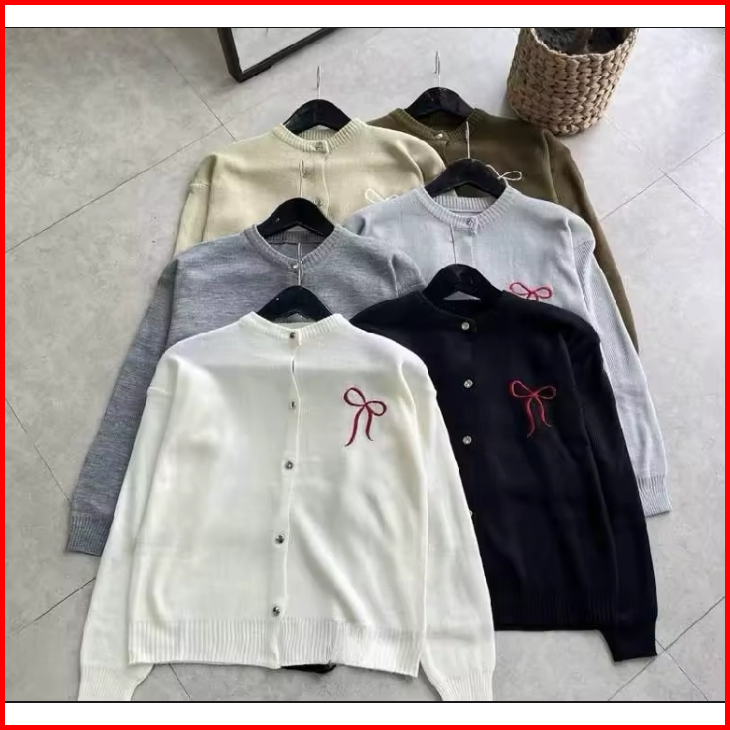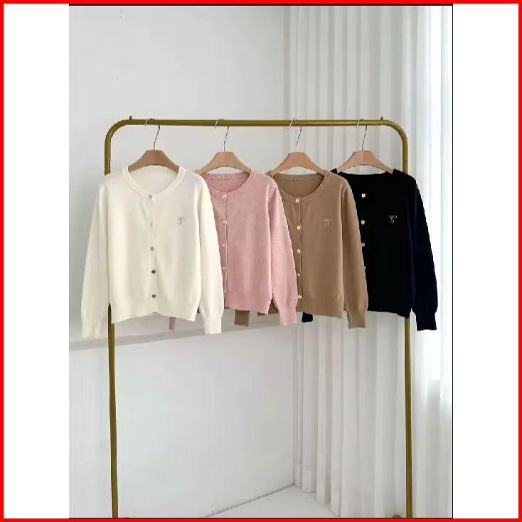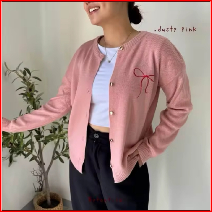 Cardigan Knit Ribbon Cardigan Atasan Wanita Ribbon Cardigan Pita Polos