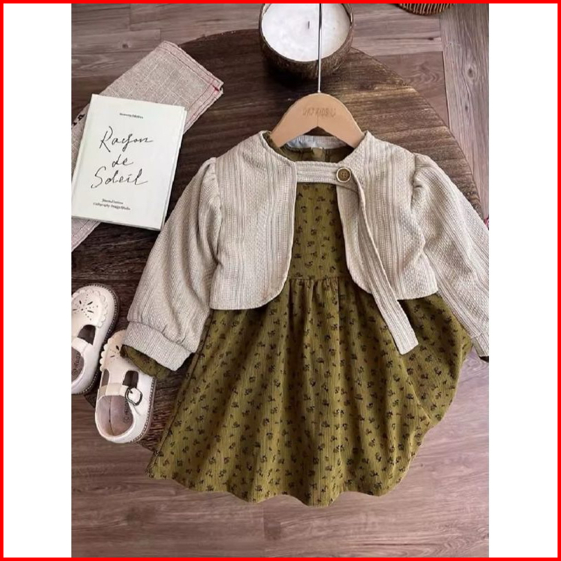 Inesra - Rompi Terpisah Bt Gaun Dres Blezer 2in1 Anak Perempuan-dres Usia 3 Bulan-4 Tahun
