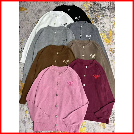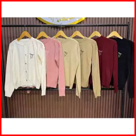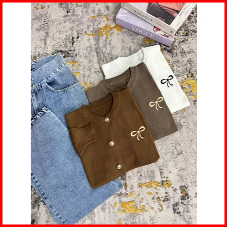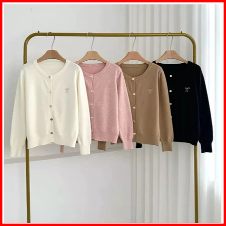 Cardigan Ribbon Emporium Bordir Pita Knitted Cardigan Atasan Wanita
