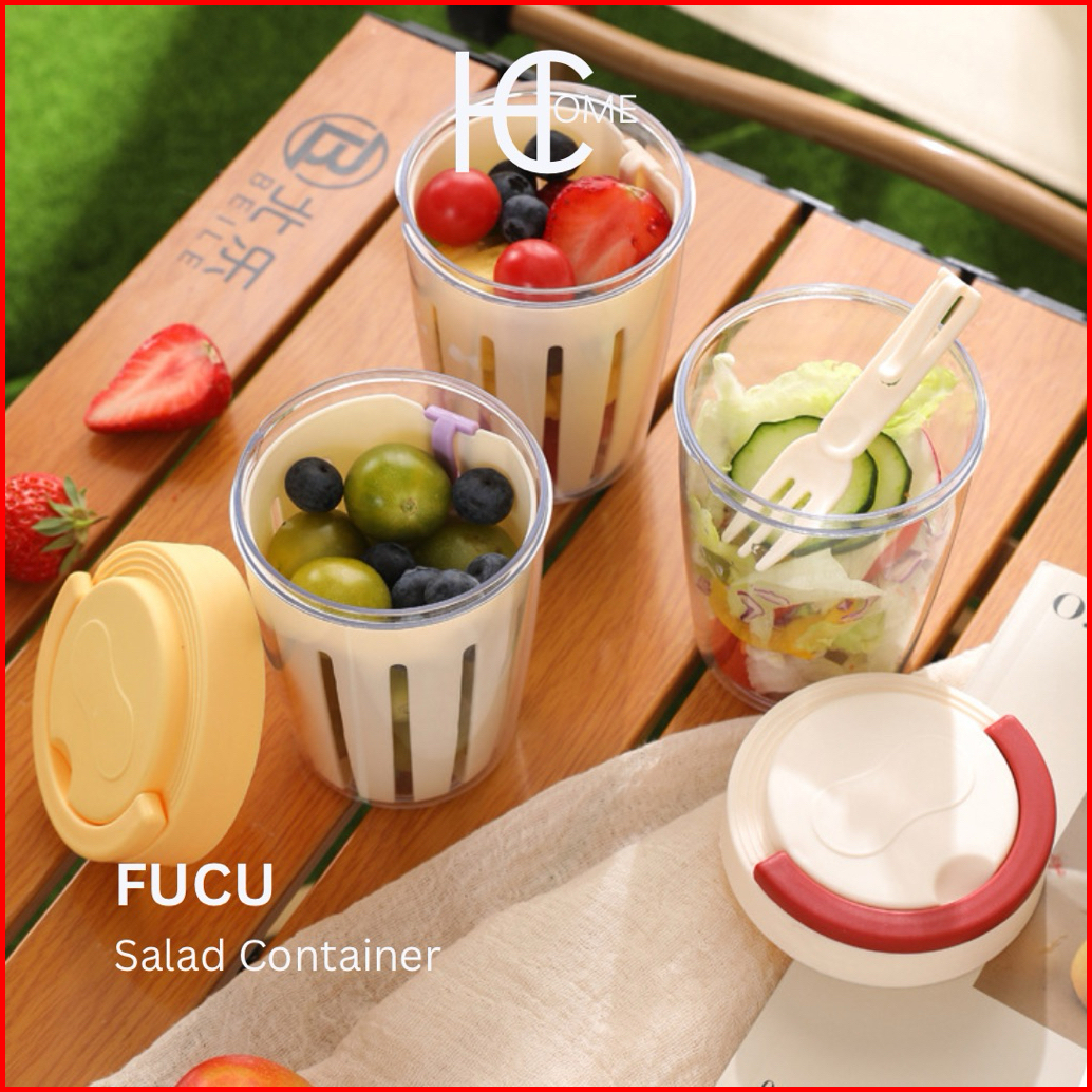 Hecca Fucu Tempat Penyimpanan Buah Dan Sayur Vegetable Fruit Salad Container Lid Strainer Fork Fruit