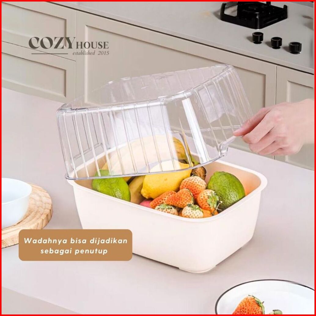 Cozyhouse Rhea Baskom Cuci Buah Sayur Extra Besar Wadah Dua Tingkat Saringan Peniris Dapur