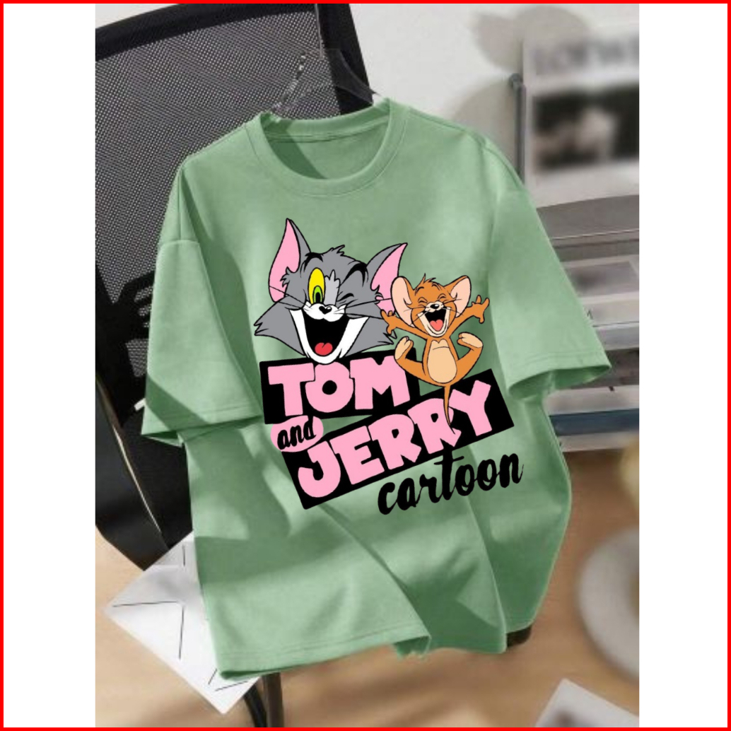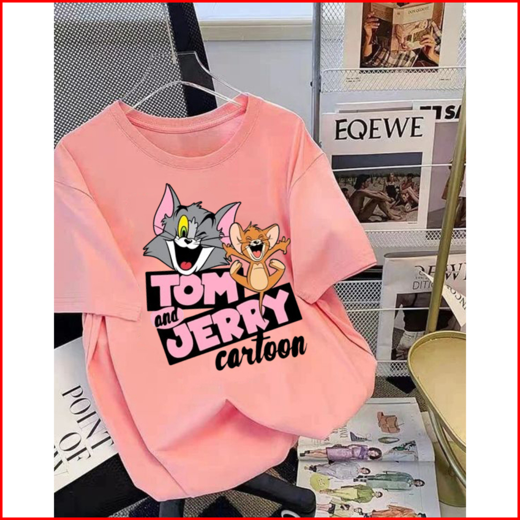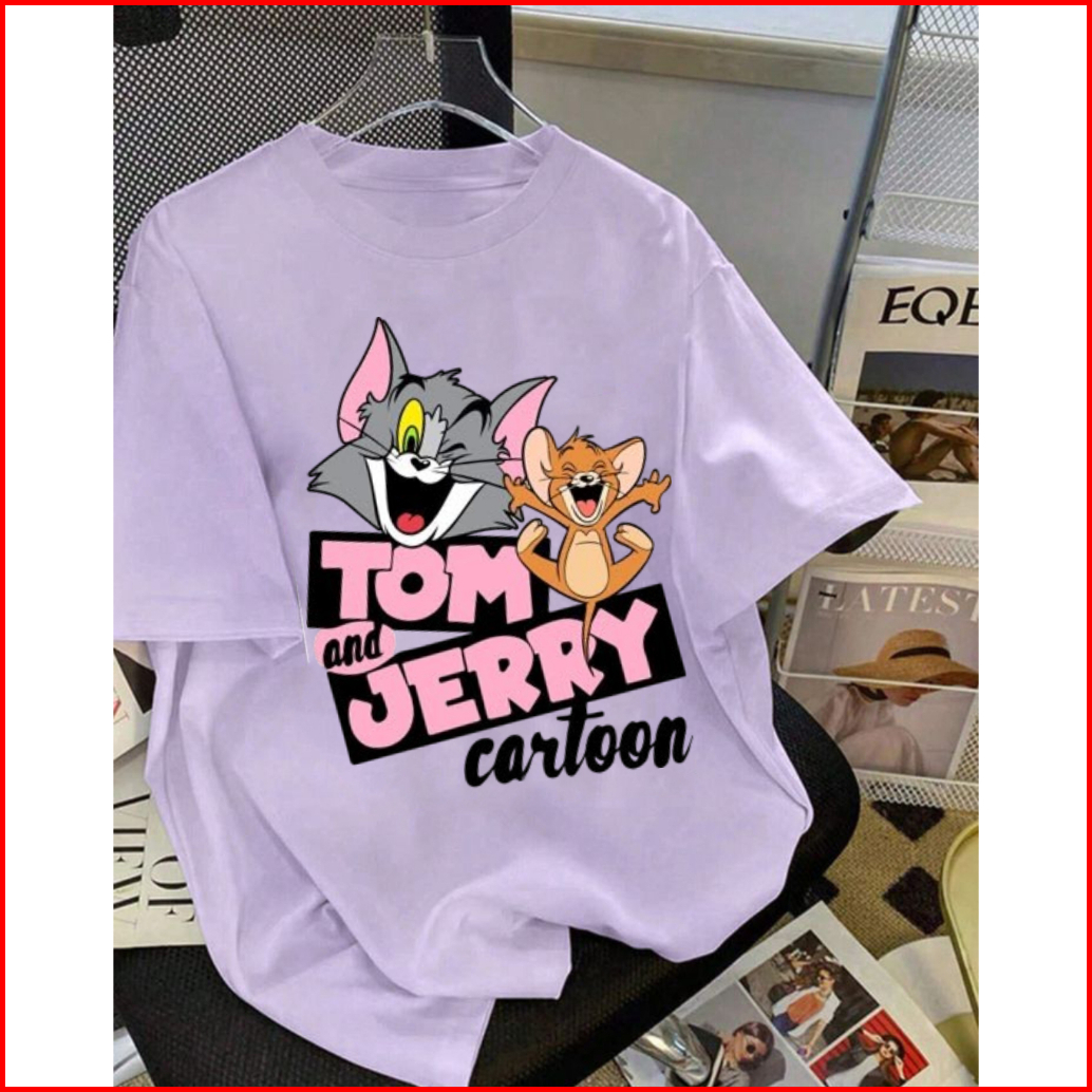 Kaos Tom And Jerry Bahan Tebal Ukuran Reguler Oversize Oblong Lengan Pendek Cewek Cowok Tshirt Oversize Atasan
