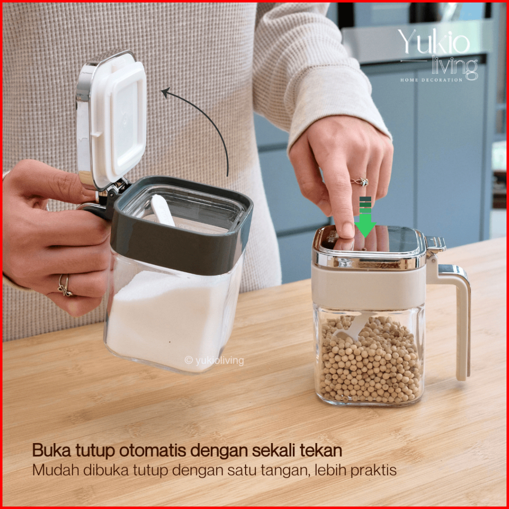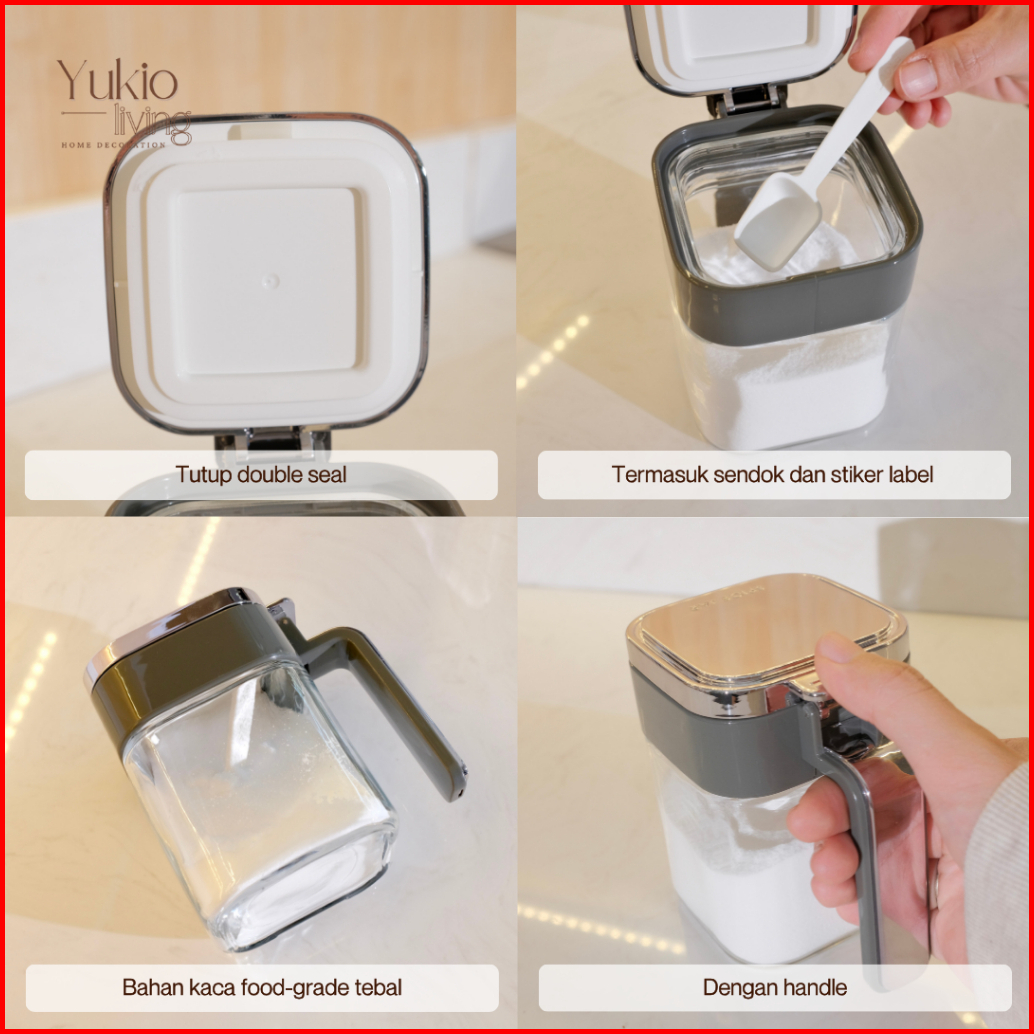 Yukio Lotus Seasoning Storage - Tempat Bumbu Dapur Kaca Premium Dengan Tutup Dan Sendok Wadah Garam