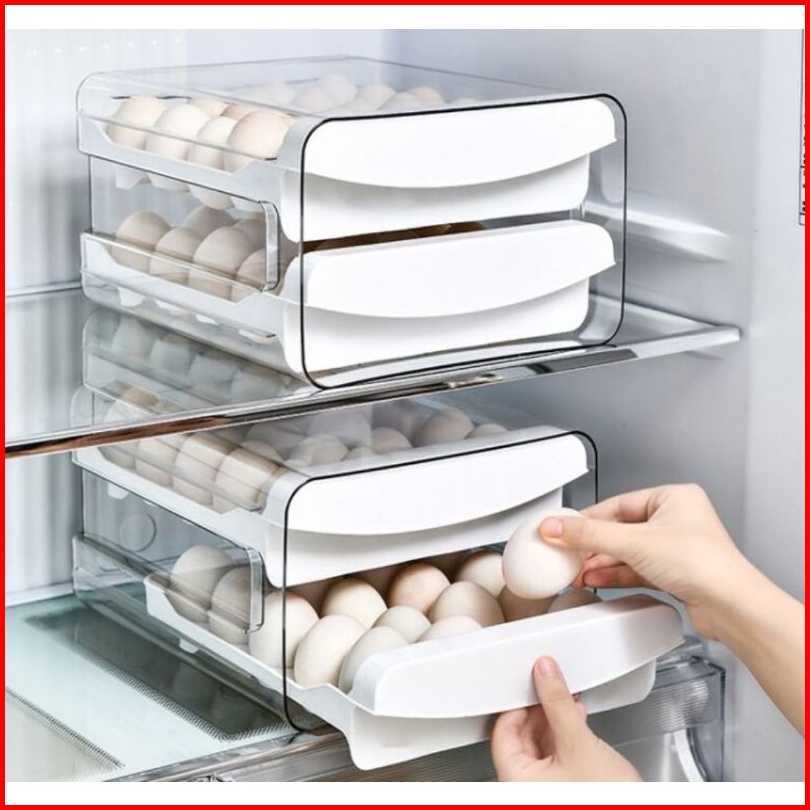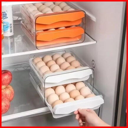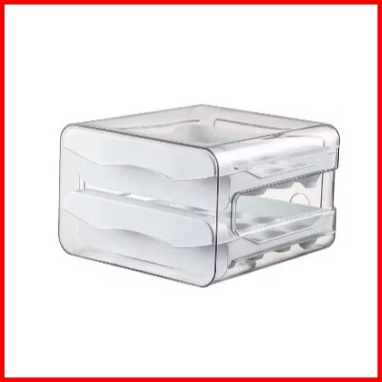Kotak Penyimpanan Telur 2 Tingkat Muat 32 Butir Tempat Telur Wadah Rak Telor Praktis Hemat Tempat