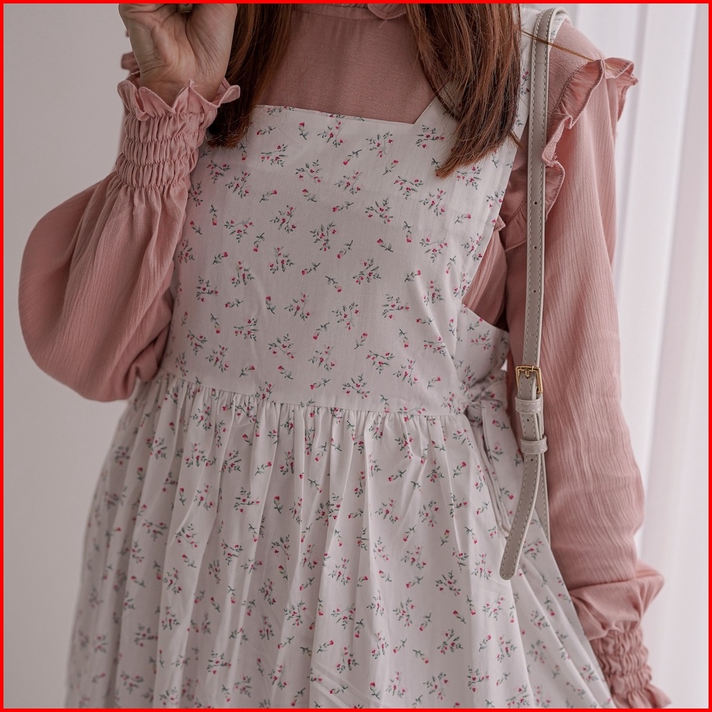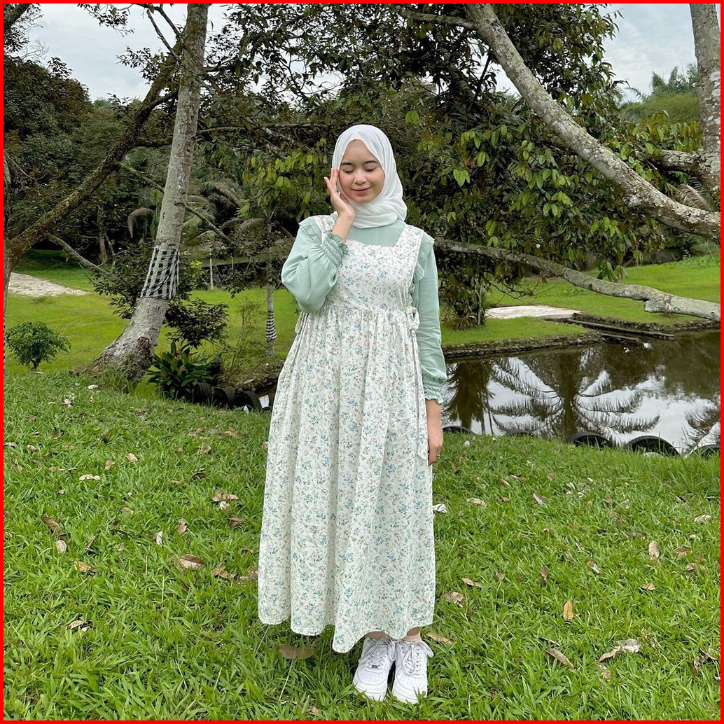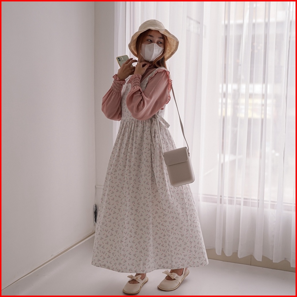 Himari Midi Dress Dress Midi Korea Overall Korean Style Sloopy Motif Bunga