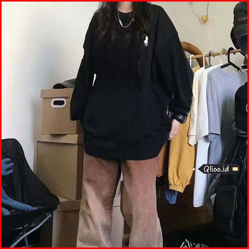 Qlioo Kaos Long Sleeve Wanita Oversize Pola Sederhana Ralph Lauren Baju Atasan Wanita Terbaru Lengan Panjang Korean Styl