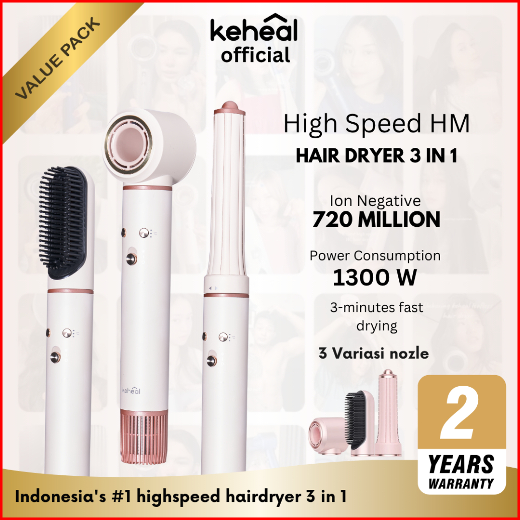 Keheal 3in1 Negative Ion Anti Radiasi High-speed Hair Dryer Quickly Dry Curl Straightener Penataan