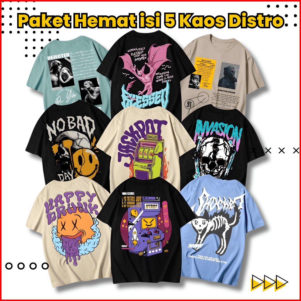 Paket Hemat Baju Kaos Distro Bandung Original Pria Wanita 100 Ribu Dapat 5 Pcs Distro Oversize Lengan Pendek Terbaru 202