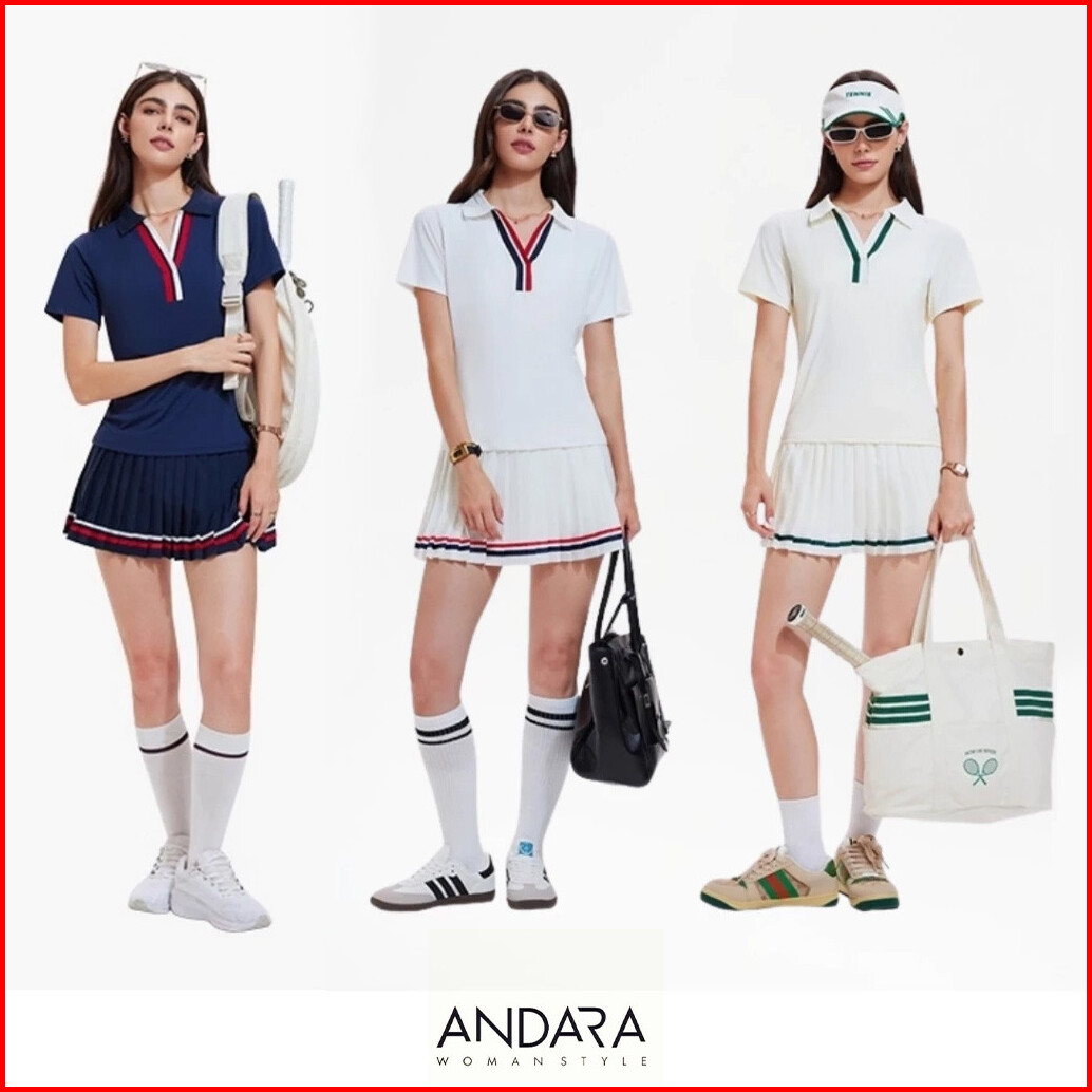 Set Rok Olahraga Wanita Tennis Golf Yoga Pilates Padel - Polo Top Lengan Pendek Stylish