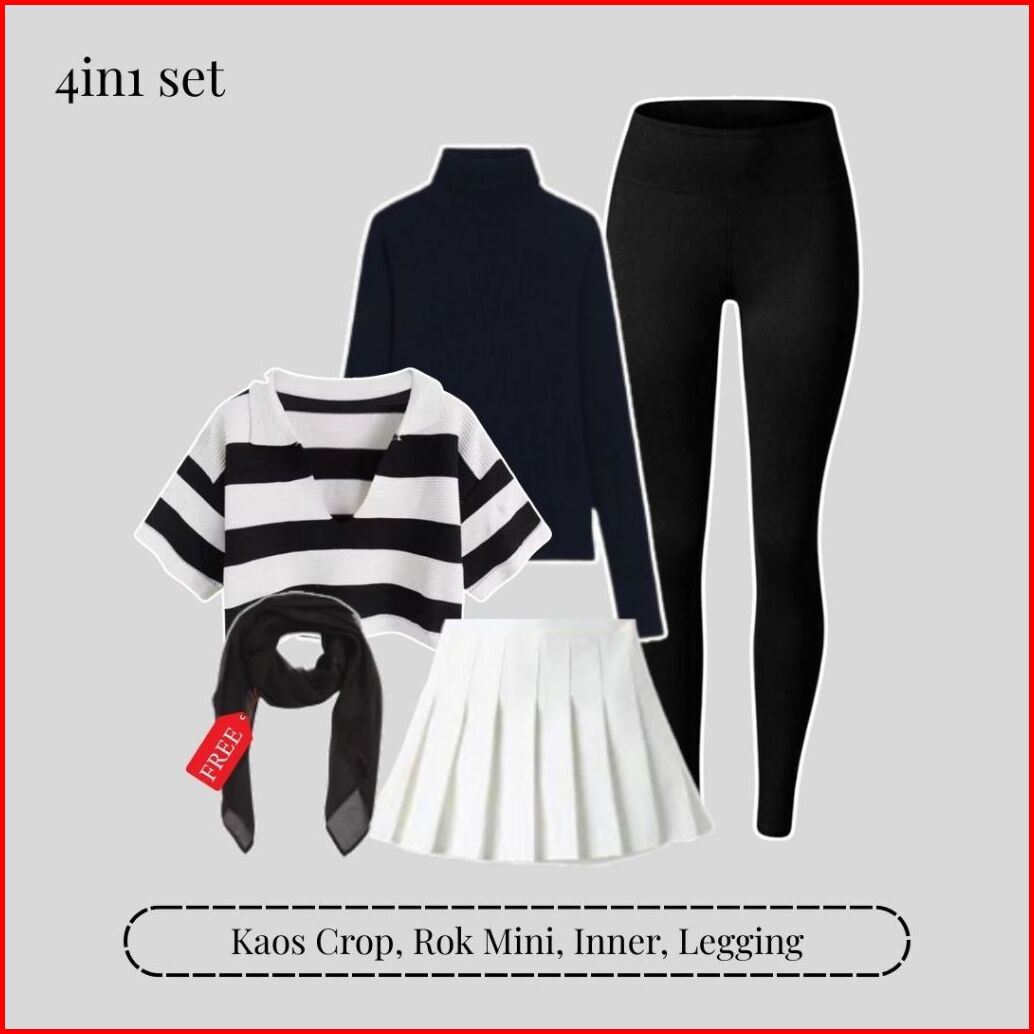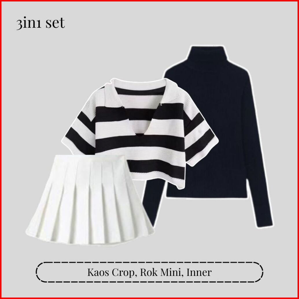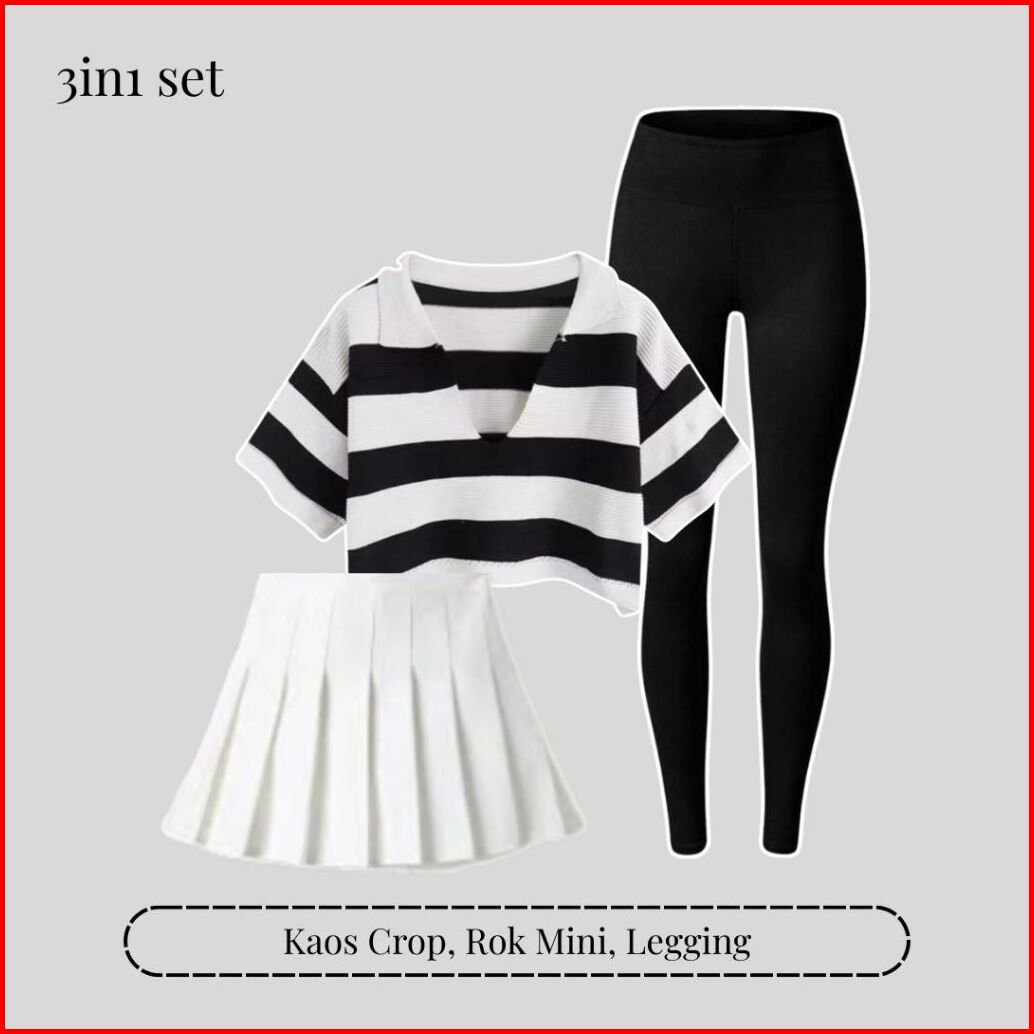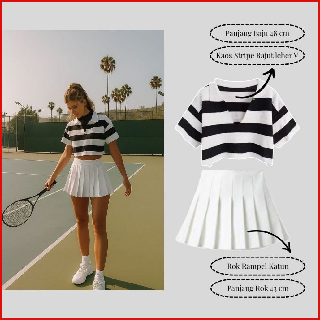 Meara Oneset Olahraga Kaos Crop Rok Mini Inner Legging Set Outfit Tenis Badminton Padel Fs193