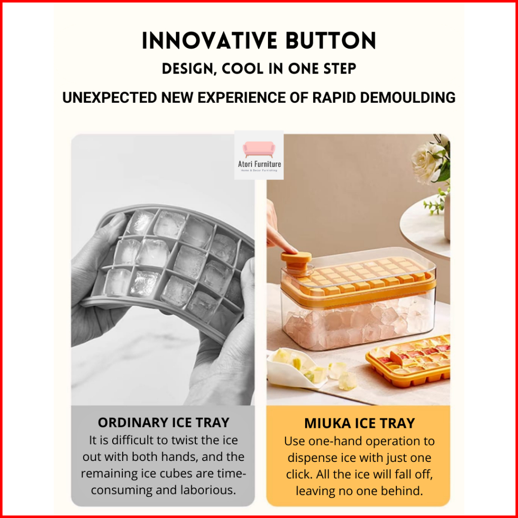Atori Ice Cube Trays Alat Cetakan Es Batu Food Grade Ditekan Kotak Penyimpanan Es Batu