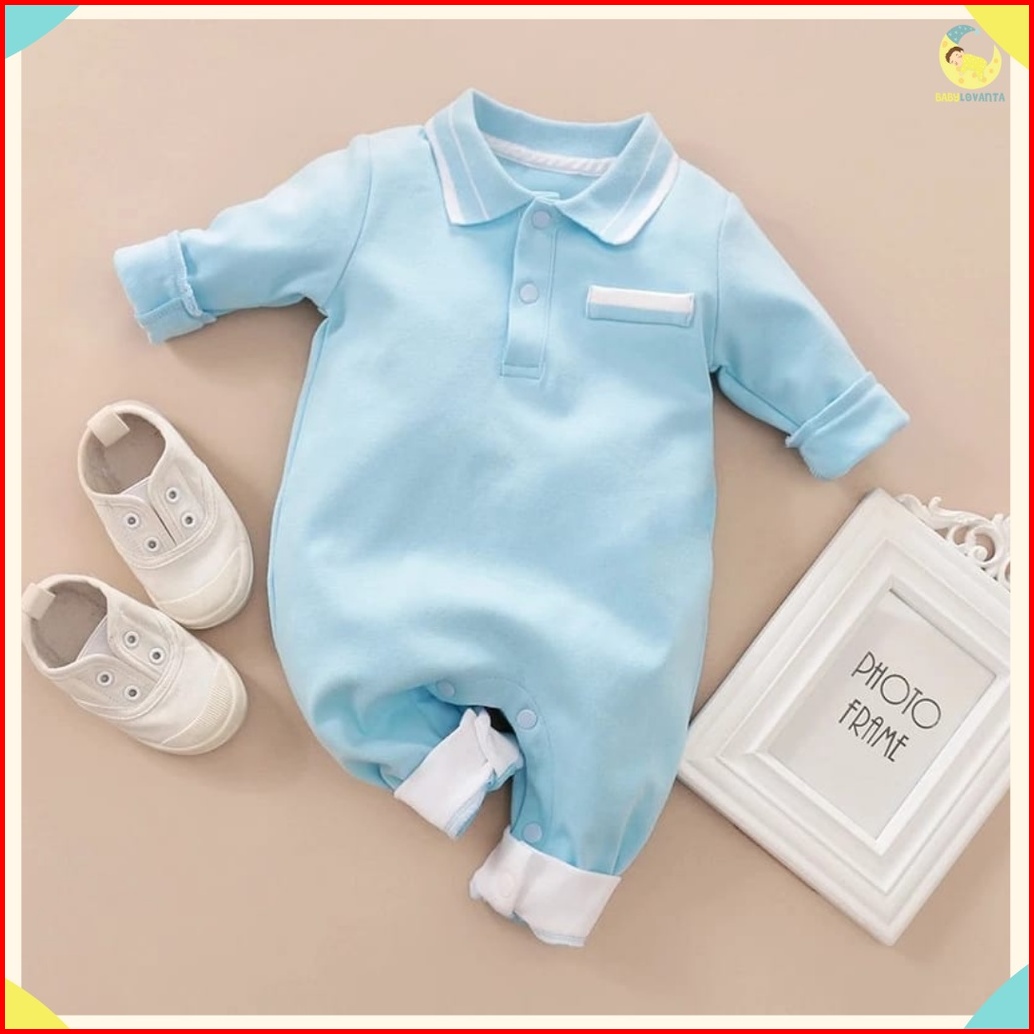 Babylovanta Jumper Bayi Laki-laki Polo Kodok Panjang Baju Bayi 0-12 Bulan Katun 100