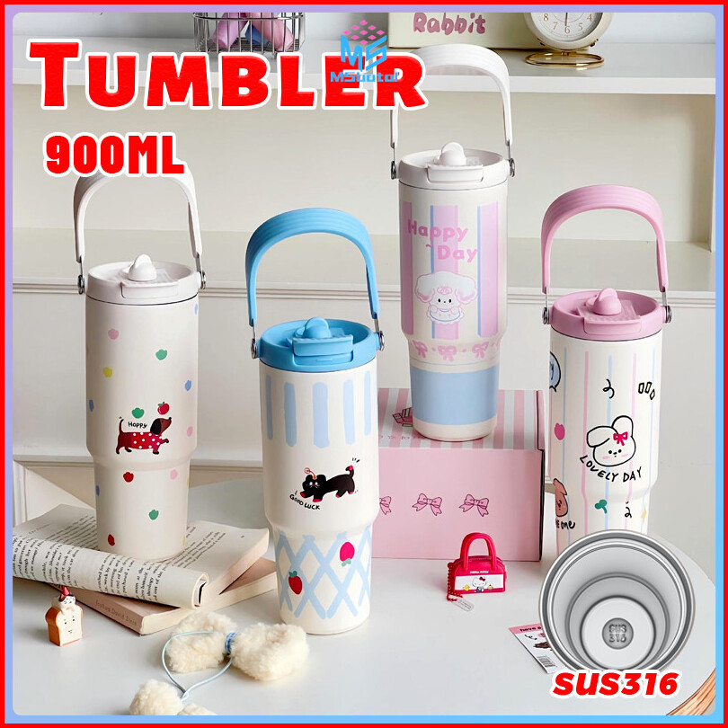 Tumbler 900ml Tumbler Stainless 316 Tumbler Gagang Tumbler Stainless Vacuum Dengan Straw Bpa Free Tumbler Tahan Panas Di