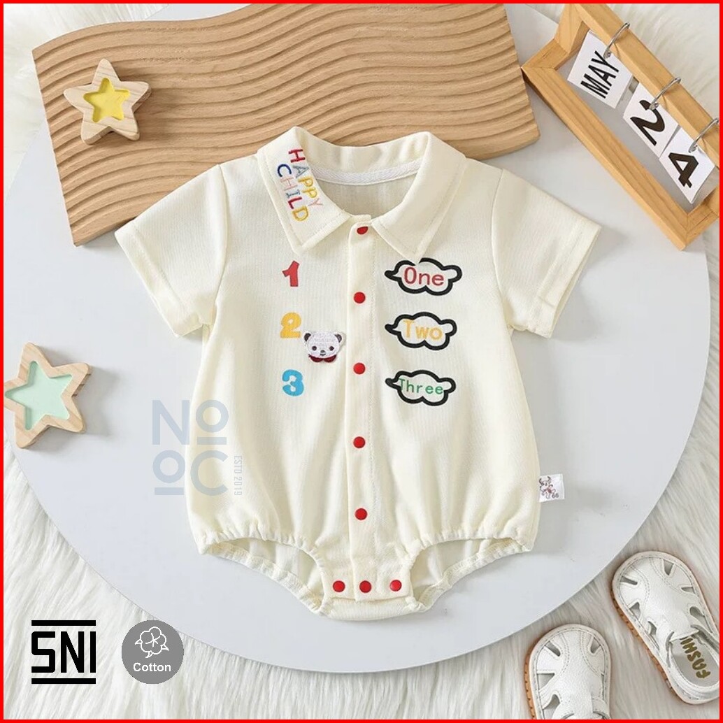 Nooc Baju Bayi Romper Jumper Bordir Happy Child 123 Cotton Fashion Baju Bayi Baru 2025 Sni