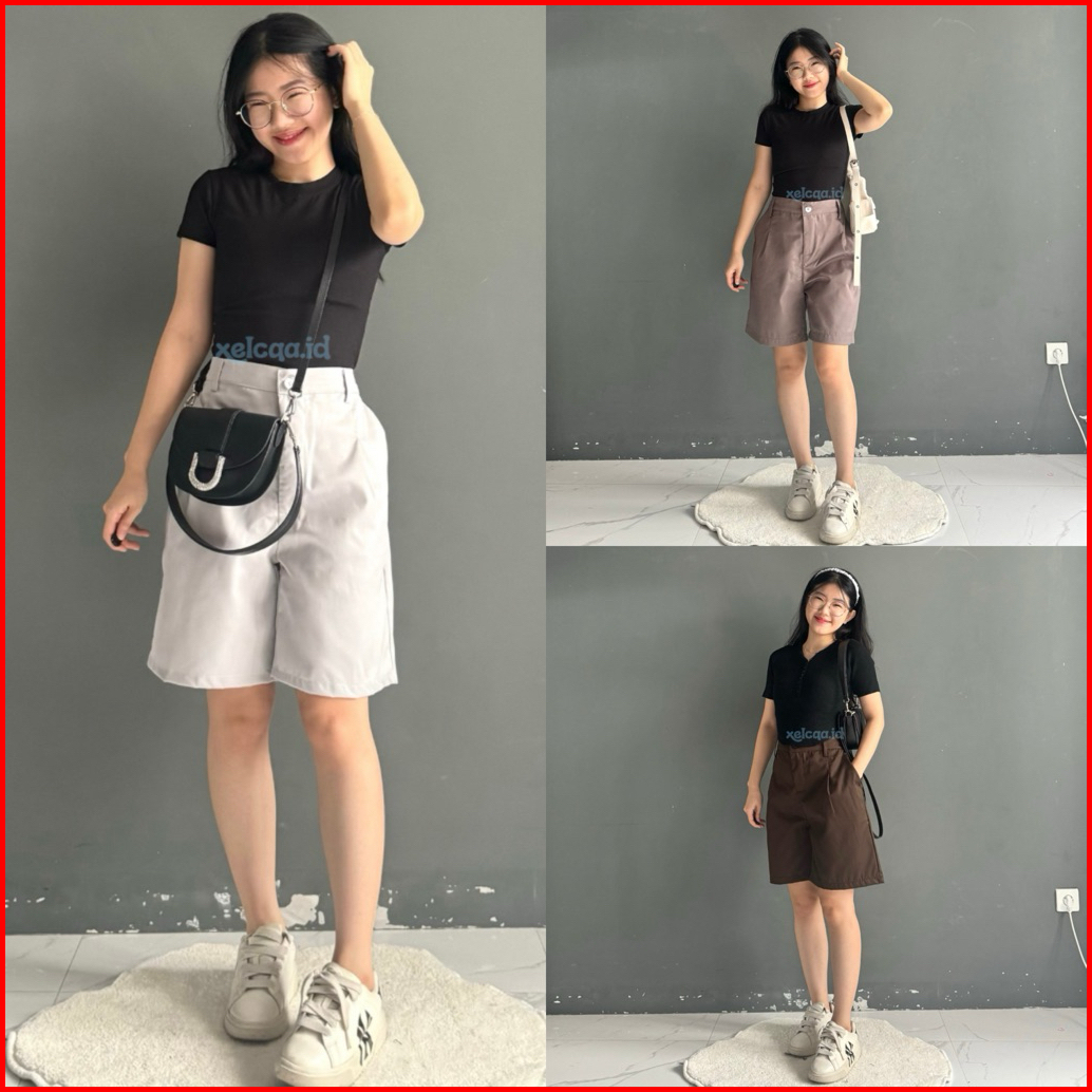 Mila Daily Pants Celana Highwaist Jorts Drill Casual Petite Size Xelcaa