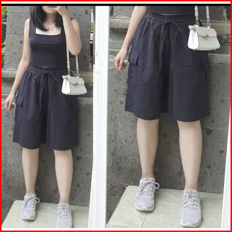 Celana Cargo Pendek Wanita Linen Crinkle Kekinian Celana Cargo Pendek Celana Santai Celana Hotpants