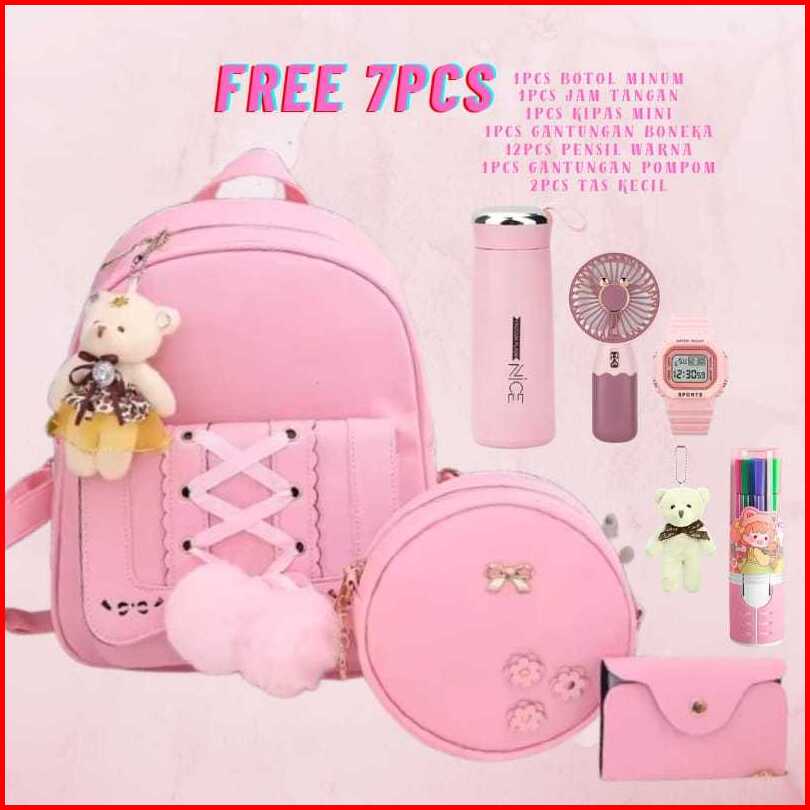 Ransel Backpack Motif Pompom Ransel Wanita Jalan Jalan