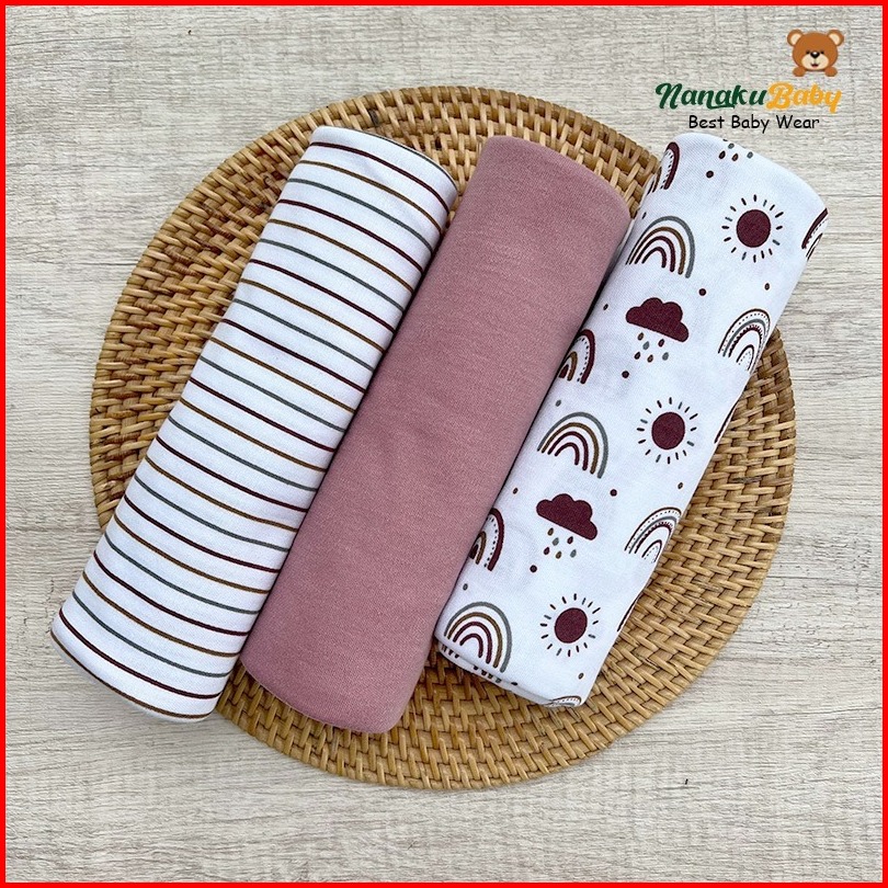 Nanaku Baby - Series Dusty Pink Bedong Bayi Newborn Isi 3 Pcs Ukuran Jumbo 110 X 90 Cm Pernel Bayi Multifungsi Pernel Ba
